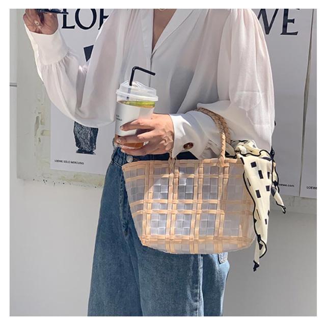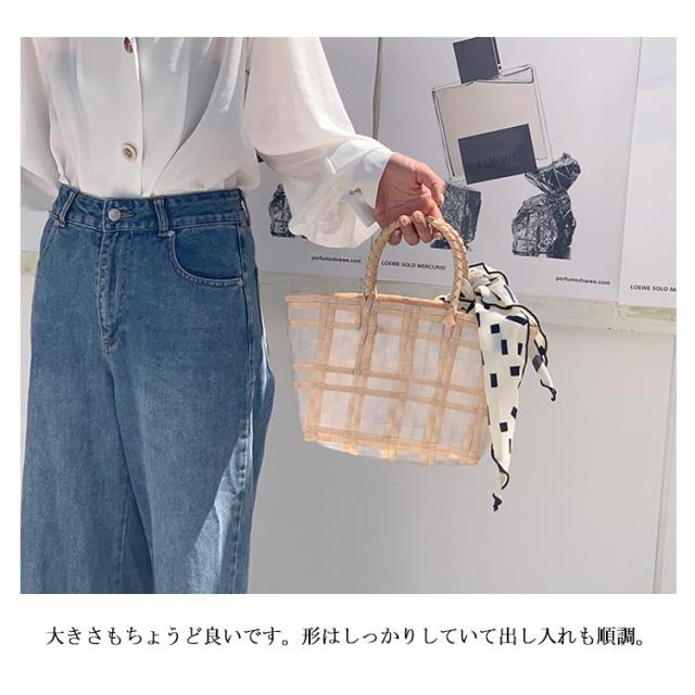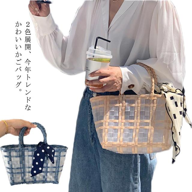 かごバッグ トート バスケット レディース ランチバッグ スカーフ付き 格子縞 透明 A4 大きめ かわいい おしゃれ ナチュラル 大容量 シンプル 軽量 春 夏 送料無料