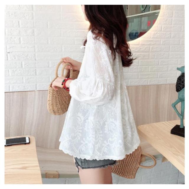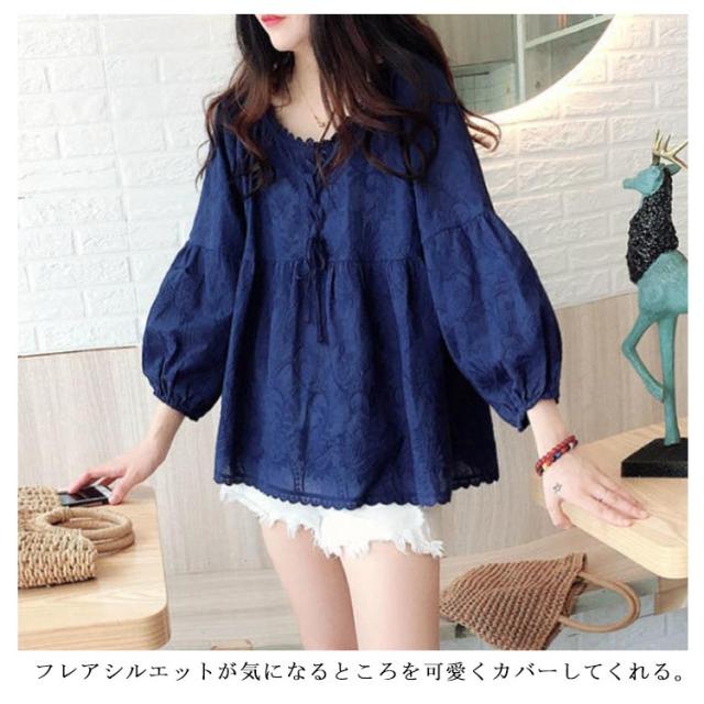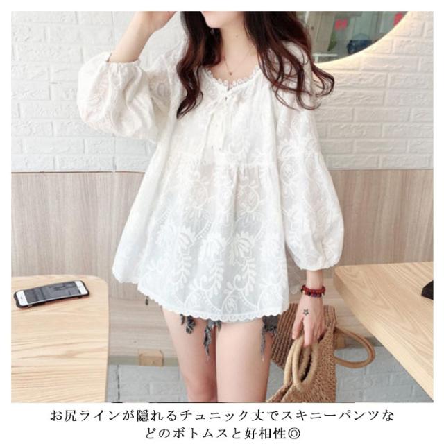 | 可愛くシルエットカバー。 フレアシルエットが気になるところを可愛くカバーしてくれる。 柔らで肌触り優しいフラワーレース刺繍生地、大人可愛いデザイン。 今年らしいボリューム感のあるパフスリーブが女性らしさを引き立てる。 ゆったりフレアシルエットがマタニティウェアとしても活躍してくれます。 キレイめスタイルにもカジュアルスタイルにも合わせる着回し力抜群のトップスです。 お尻ラインが隠れるチュニック丈でスキニーパンツなどのボトムスと好相性◎ | |