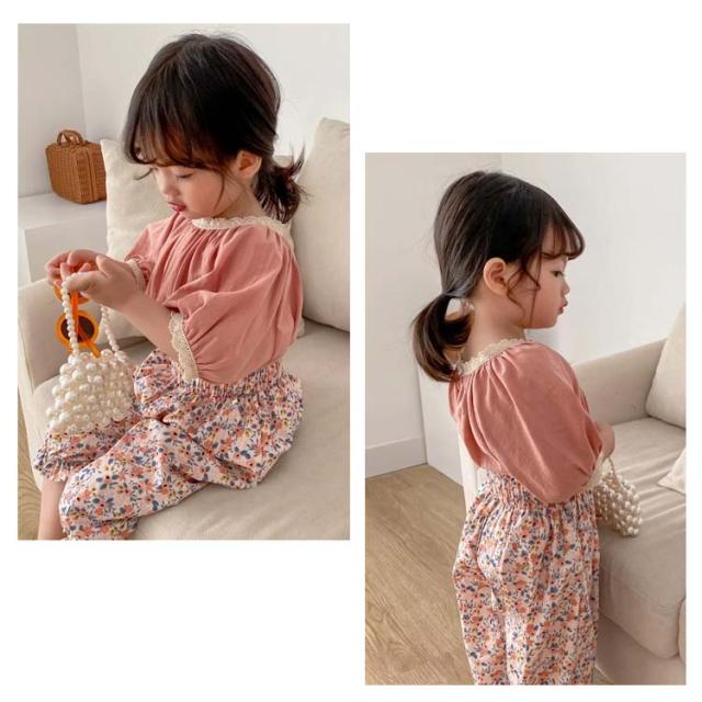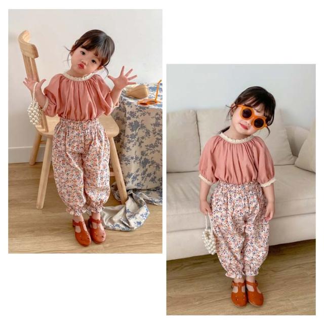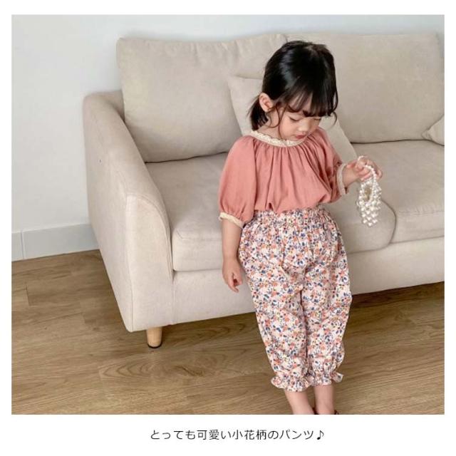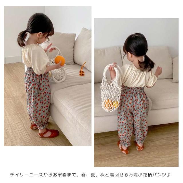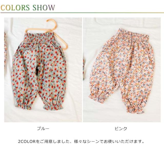 子供服 ロングパンツ キッズ 長ズボン 女の子 ハーレムパンツ バルーンパンツ 九分丈パンツ 韓国子供服 子ども服 送料無料 おしゃれ 小花柄 かわいい 綿 コットン お出かけ 通学 通園 春 夏 80 90 100 110 120 130