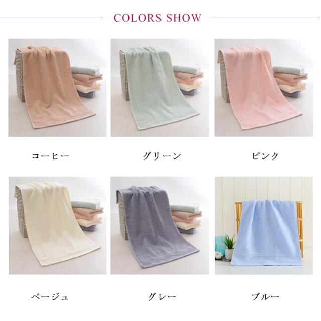 | ふんわりボリューム 抜群の吸水性とふっくらやわらか感がくせになる心地よさ。 オシャレにカラーコーディネート 色移りや毛羽落ちがない ※タオルの特性上、初めは色落ちする可能性がございます。必ず他の洗濯物とは分け、たくさんのお水で、単独でお洗濯下さい。 | |