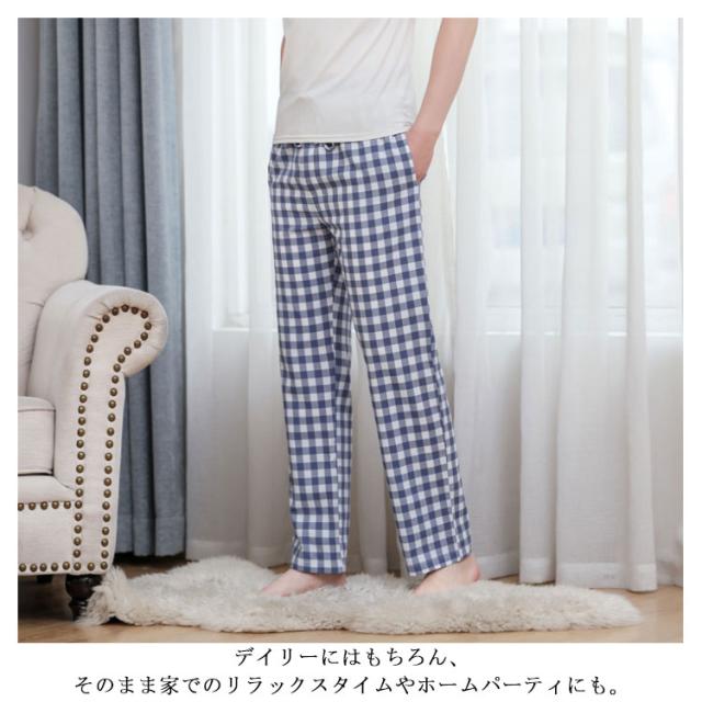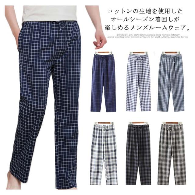 パジャマ メンズ ルームウェア パンツ 長ズボン 部屋着 カジュアル ボトムス 寝間着 ロング丈 チェック柄 ポケット付き オシャレ 吸汗 通気 ゆったり シンプル 肌に優しい オールシーズン 主人 旦那 父の日