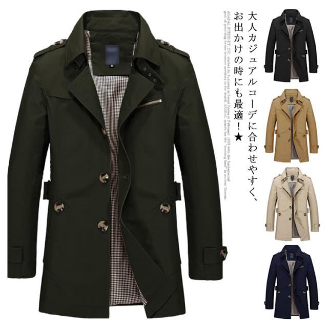 トレンチコート メンズ コート ロングコート ブルゾン トレンチ スプリングコート 着痩せ 無地 防風 大きいサイズ お洒落 ゆったり アウター カジュアル 春物