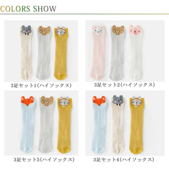 選べる2タイプ!ベビーソックス キッズ 靴下 男の子 子供ソックス 女の小 キッズソックス くつ下 ハイソックス ショート メッシュ 3足セット 送料無料 涼しい スクール 幼児 夏用 コットン 綿 薄手 夏 春 かわいい ギフト プレゼント 動物 植物 果物