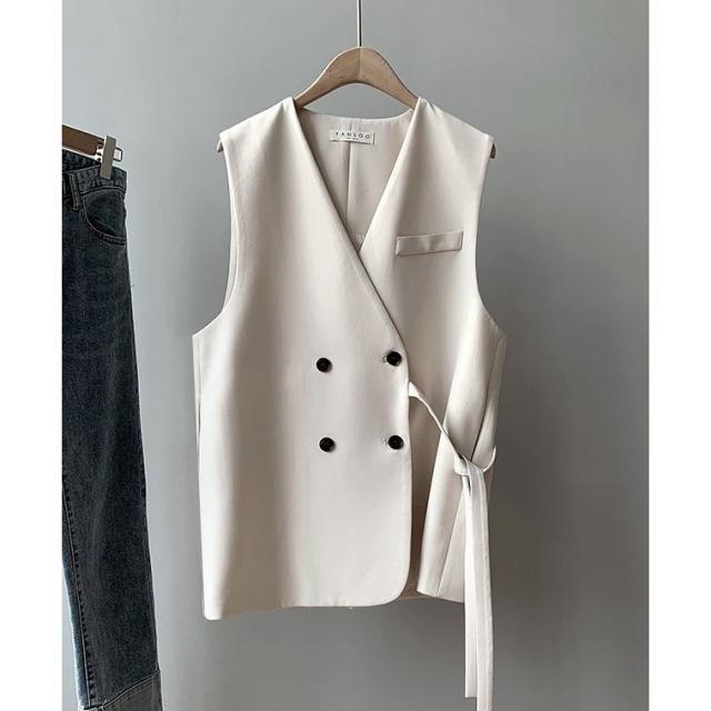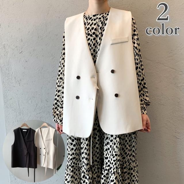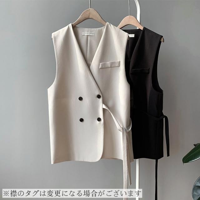 ベスト ジレ 前開き レディース 女性 トップス Vネック ダブルボタン 胸ポケット 無地 シンプル きっちり お洒落 きれいめ お出かけ 通勤スタイ