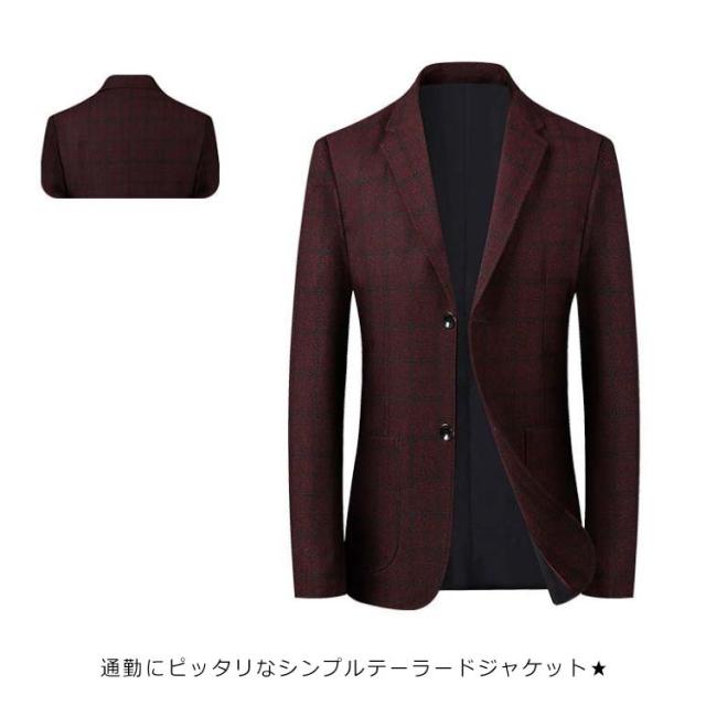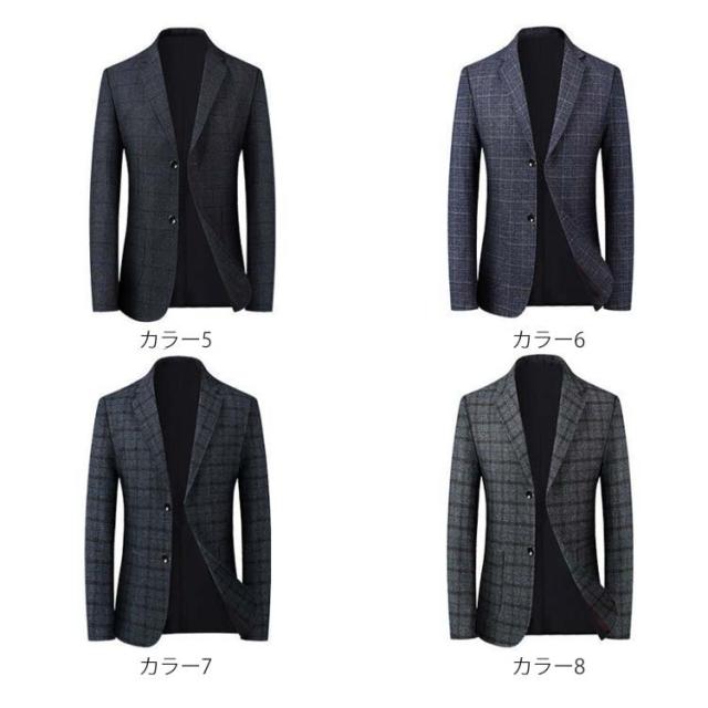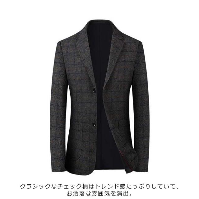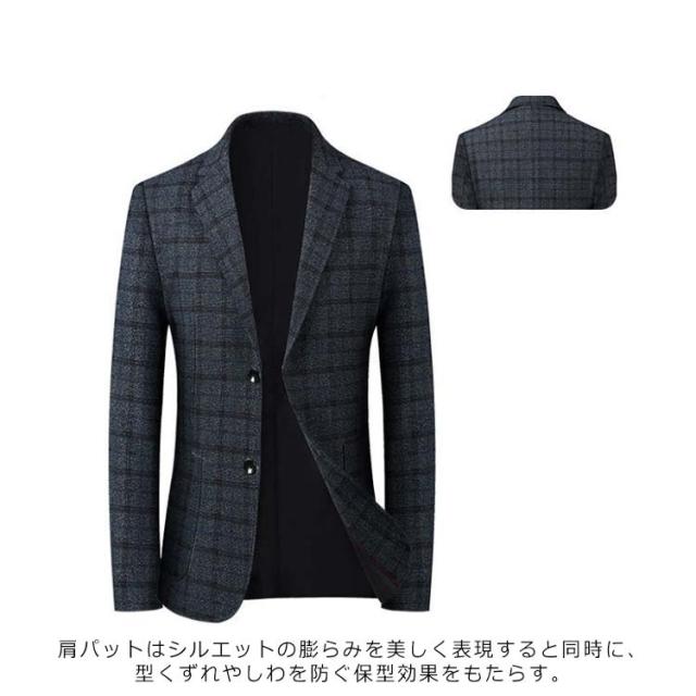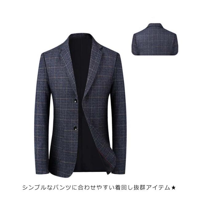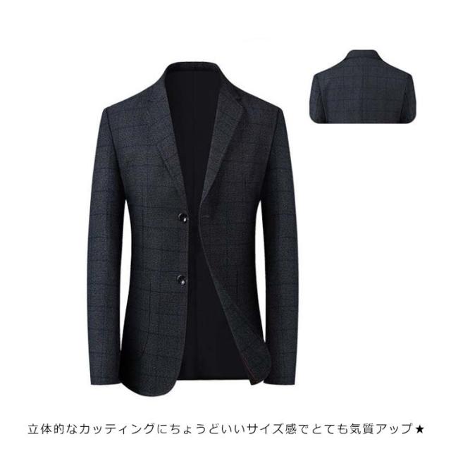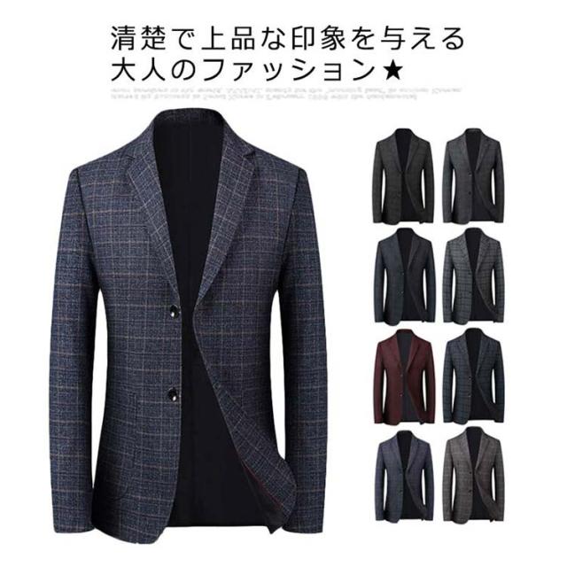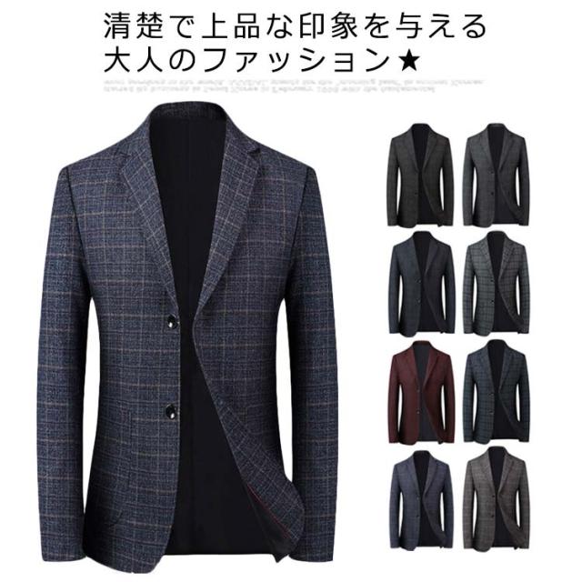 スーツジャケット メンズ スーツコート スリムスーツ スーツトップス ビジネス テーラードジャケット 長袖 チェック柄 アウター ジャケット オフィス 通勤 紳士服 フォーマル 着痩せ 大きいサイズ 結婚式 面接 就活 入学式