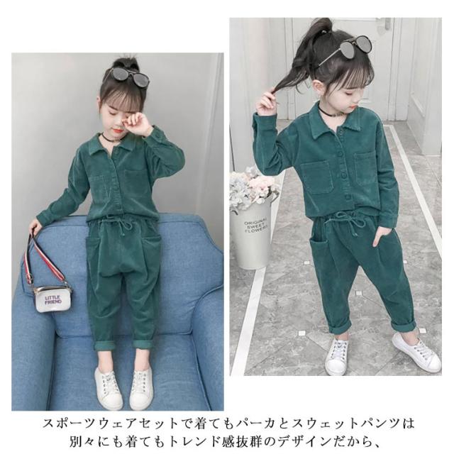 送料無料 子供服 シャツブラウス パンツ スウェット 上下 2点セット キッズ 子供服 パーカー セットアップ スポーツウェア ガールズ ダンス服 ジャージ ジュニア 小学生 おしゃれ 春秋 かわいい 新作 110 120 130 140 150 160