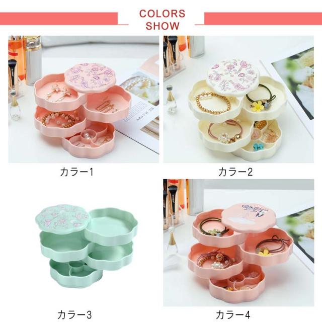 タワー アクセサリートレー 4段 ケース カラフル 収納 スタンド トレイ ボックス ネックレス ピアス 回転式