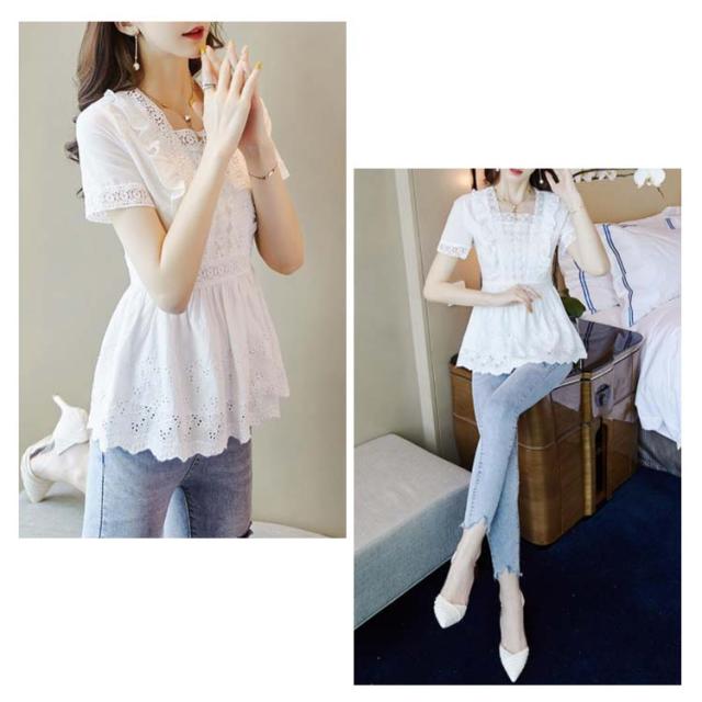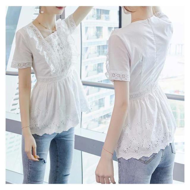 送料無料 ブラウス レディース レースシャツ 白 夏 半袖 刺繍 花柄 ホワイト チュニック 大人 オフィス トップス キレイめ 半袖ブラウス