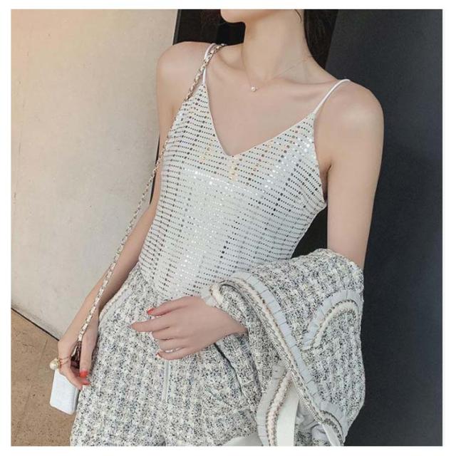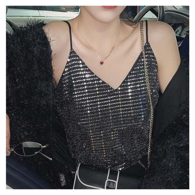 レディース スパンコール ダンス衣装 送料無料 セクシー Vネック キャミソール ステージ衣装 トップス 無地 タンクトップ キラキラ 着痩せ オシャレ インナー 上着 演出服 ヒップホップ