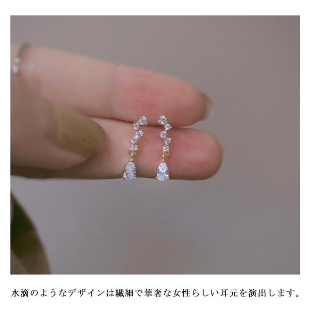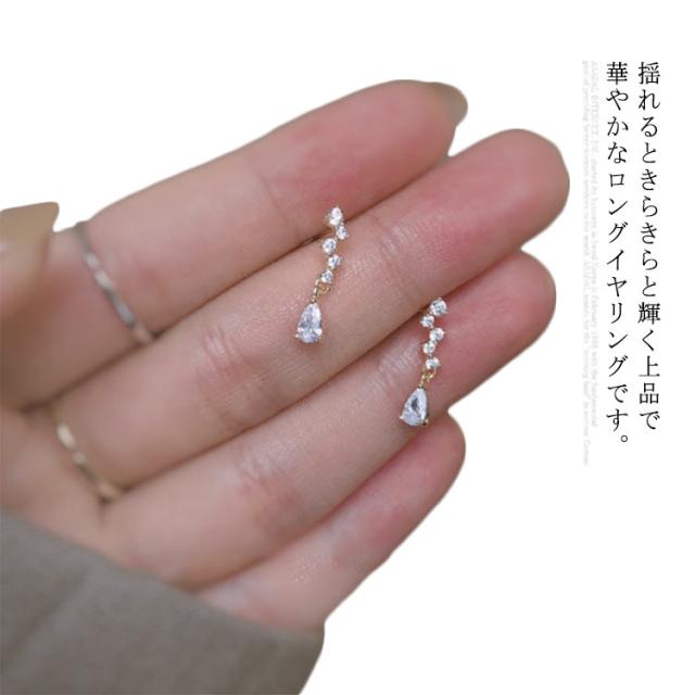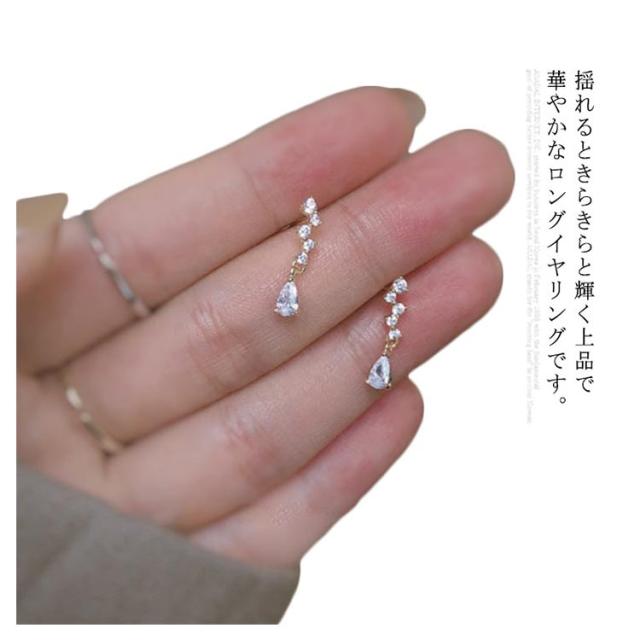 イヤリング 揺れる レディース 女性 ロング ピアス ジルコン シルバー925 金属アレルギー対応 キラキラ エレガント 上品 華奢 可愛い おしゃれ きれいめ アクセサリー ジュエリー