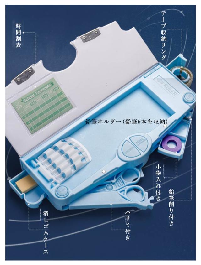 | 機能性はバッチリなので大活躍間違いなし。 時間割表 消しゴムケース ハサミ付き 鉛筆削り付き 鉛筆ホルダー(鉛筆5本を収納) テープ収納リング 小物入れ付き 大容量でテーブルの上で散らばりそうな小物も、一気におしゃれに片付きます。 文房具が一目瞭然で、分かりやすく使いやすい | |