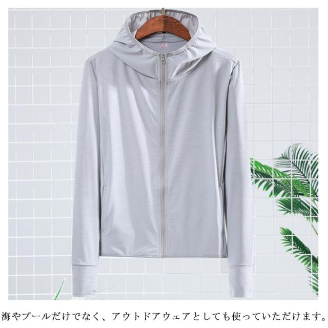 ラッシュガード レディース パーカー メンズ 水着用 長袖 体型カバー UVパーカー 紫外線対策 ひんやり 無地 アウトドア ビーチ 日焼け防止 フード付き