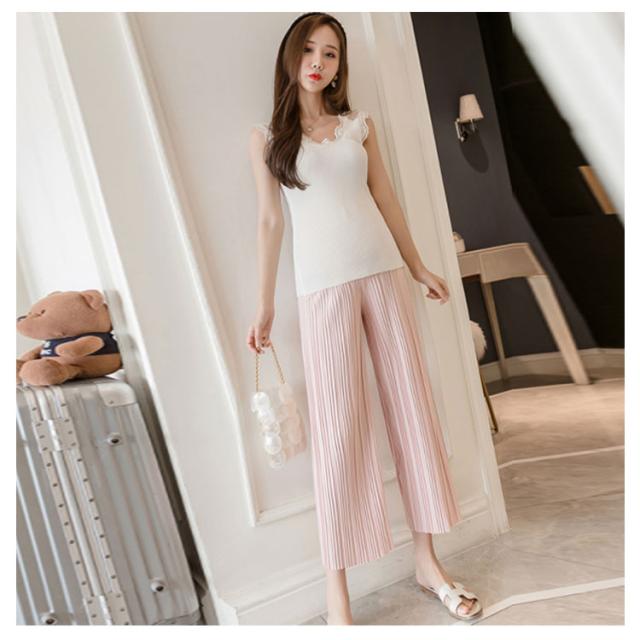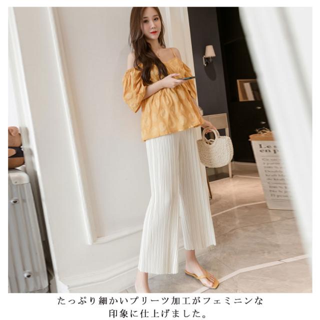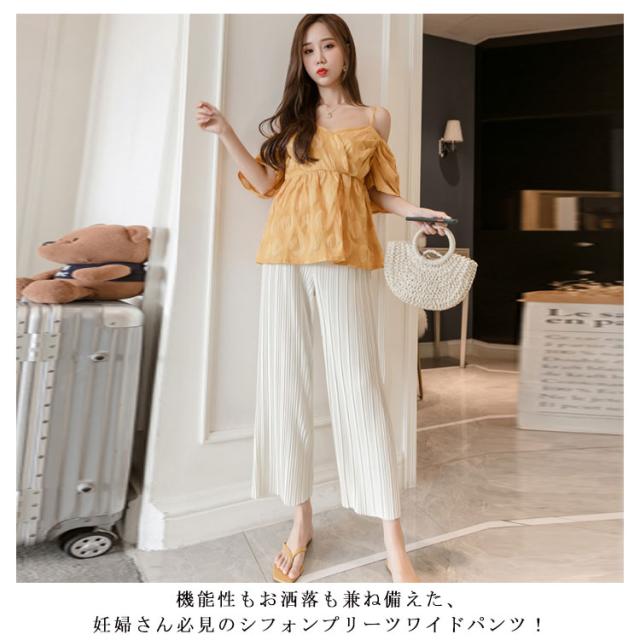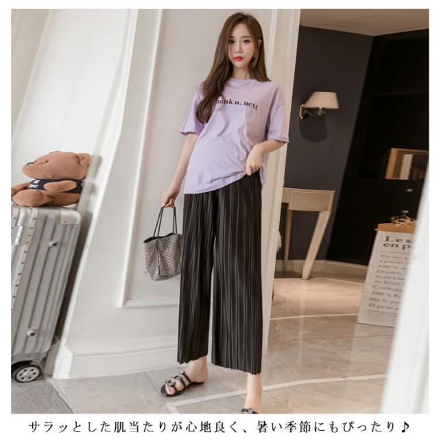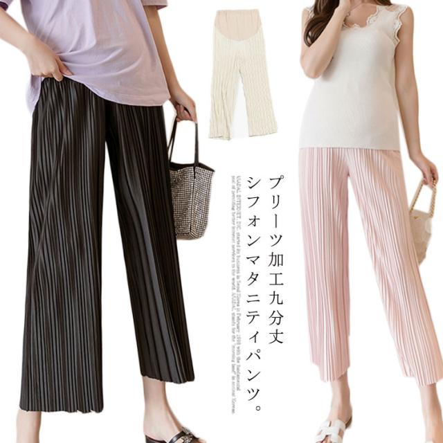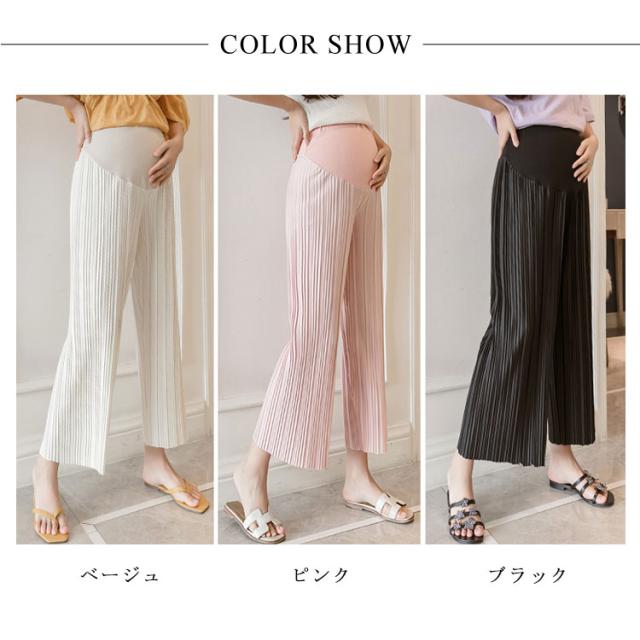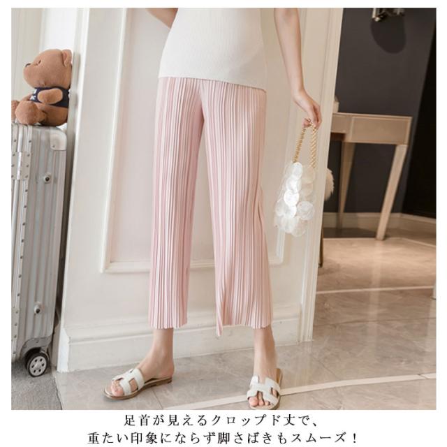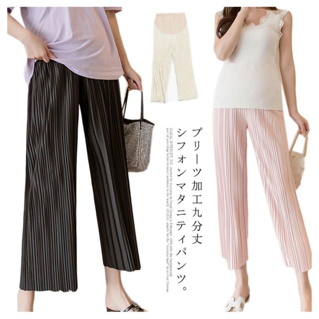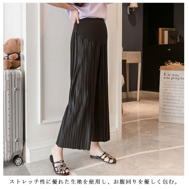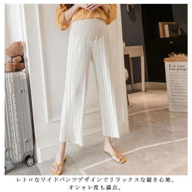 送料無料マタニティ ワイドパンツ プリーツパンツ 九分丈 マタニティパンツ レディース ロングパンツ 妊婦 マタニティウェア 伸縮性 ガウチョパンツ 薄手 すっきり 美脚 脚長 外出 女性 ママ お母さん おしゃれ 柔らか アジャスター