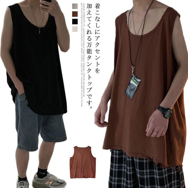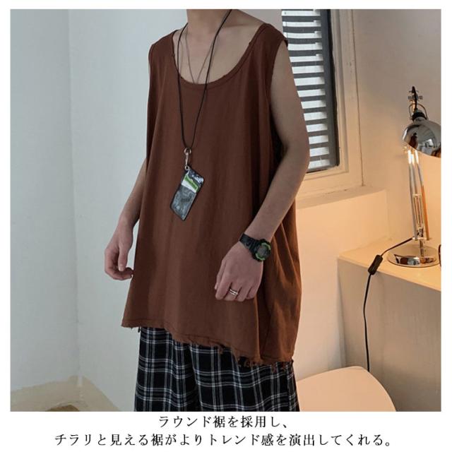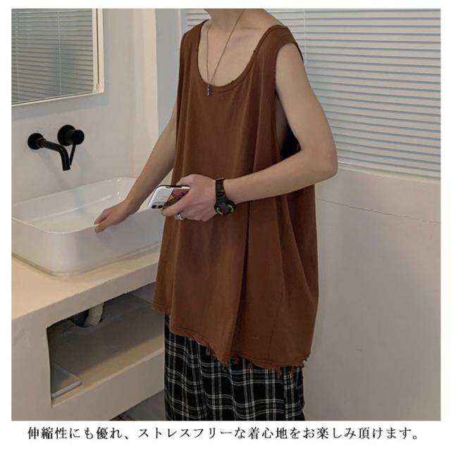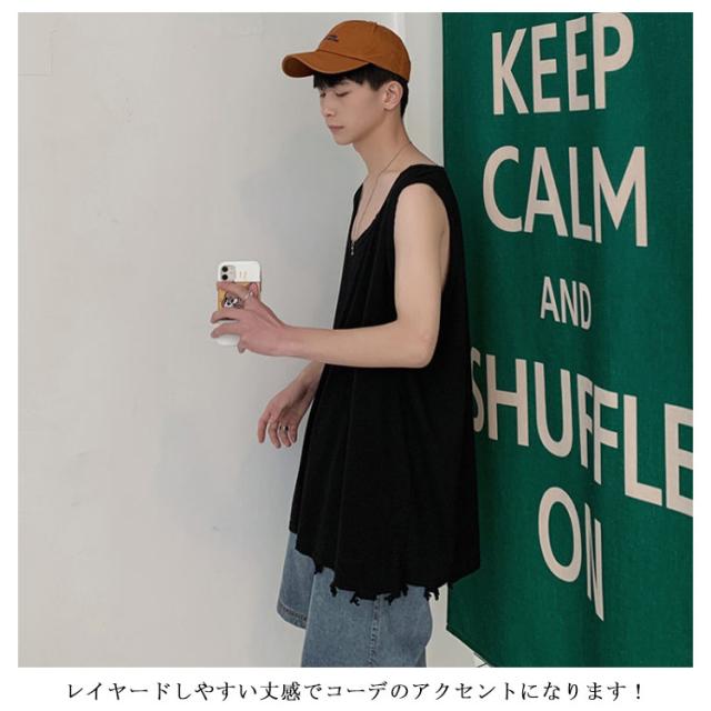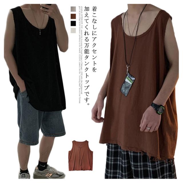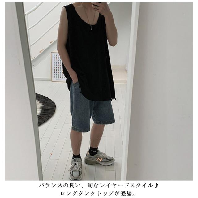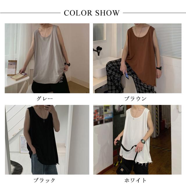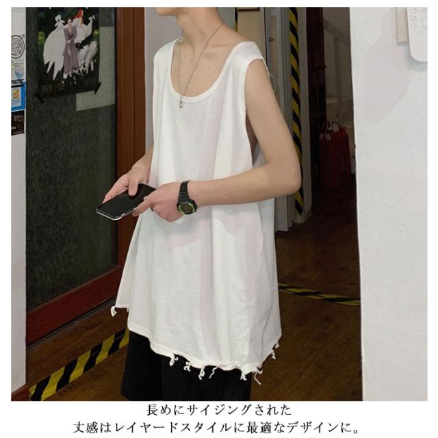送料無料ロング丈タンクトップ カットソー メンズ ノースリーブ 無地 インナー ラウンドネック 吸汗 速乾 スポーツ 定番 重ね着 おしゃれ 夏 春 フィットネス ランニング メンズファッション Tシャツ トップス