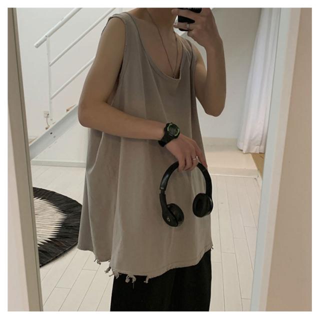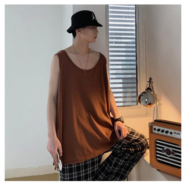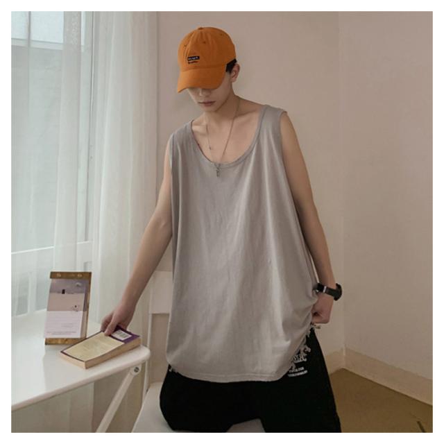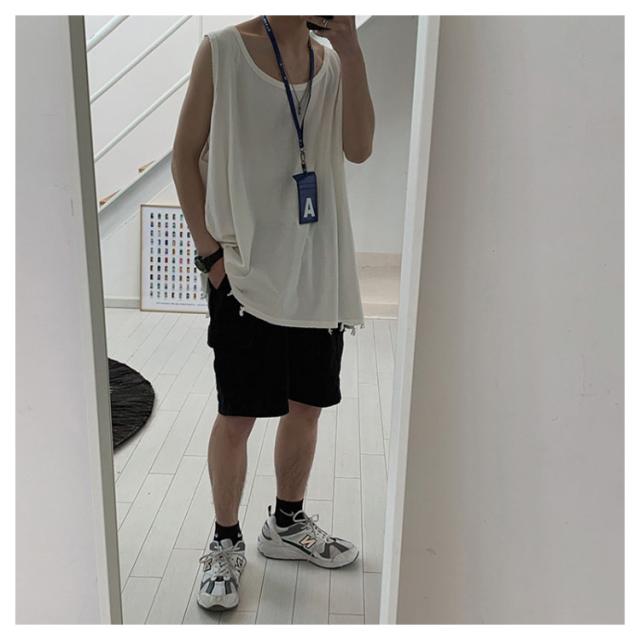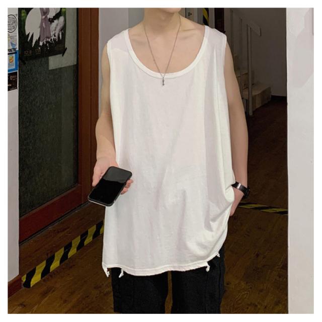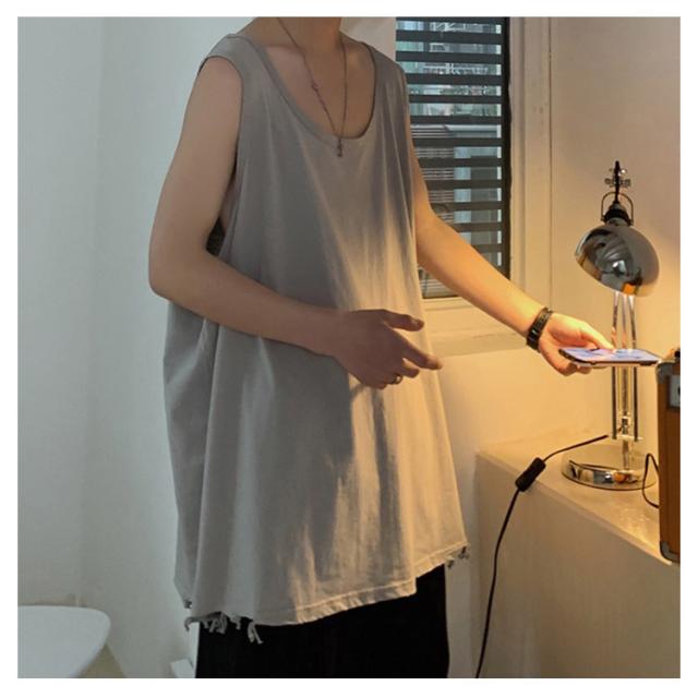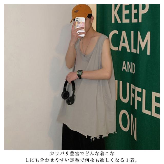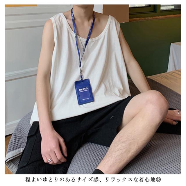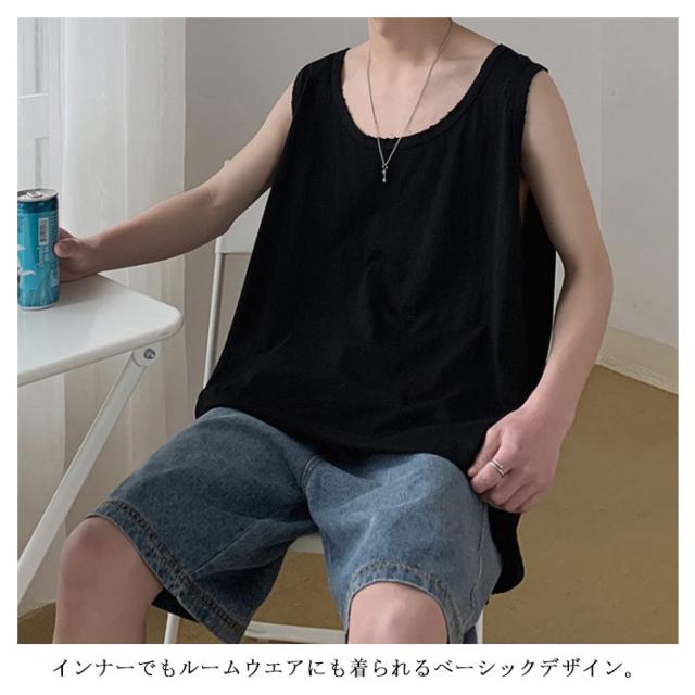 送料無料ロング丈タンクトップ カットソー メンズ ノースリーブ 無地 インナー ラウンドネック 吸汗 速乾 スポーツ 定番 重ね着 おしゃれ 夏 春 フィットネス ランニング メンズファッション Tシャツ トップス