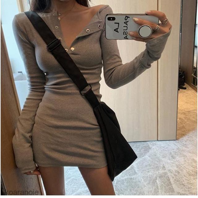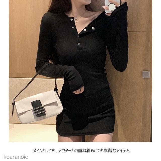 長袖ワンピース レディース ワンピース タイト スリムワンピース ストレッチ性 ショートワンピ 黒 ミニ丈ワンピース タイトワンピース