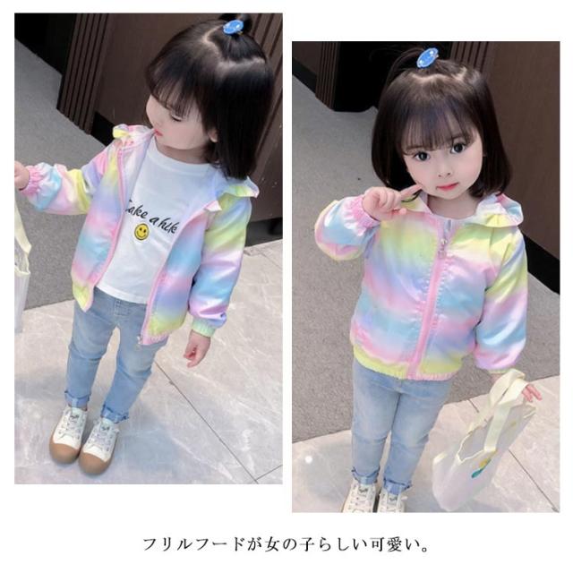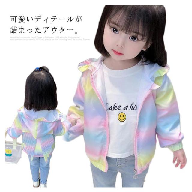 翼付き アウター フード付 ジャケット 子供服 フリル レインボー 女の子 キッズ 可愛い ウインドブレーカー 春服 ジップパーカー 秋 80cm 90cm 100cm 110cm 120cm 130cm