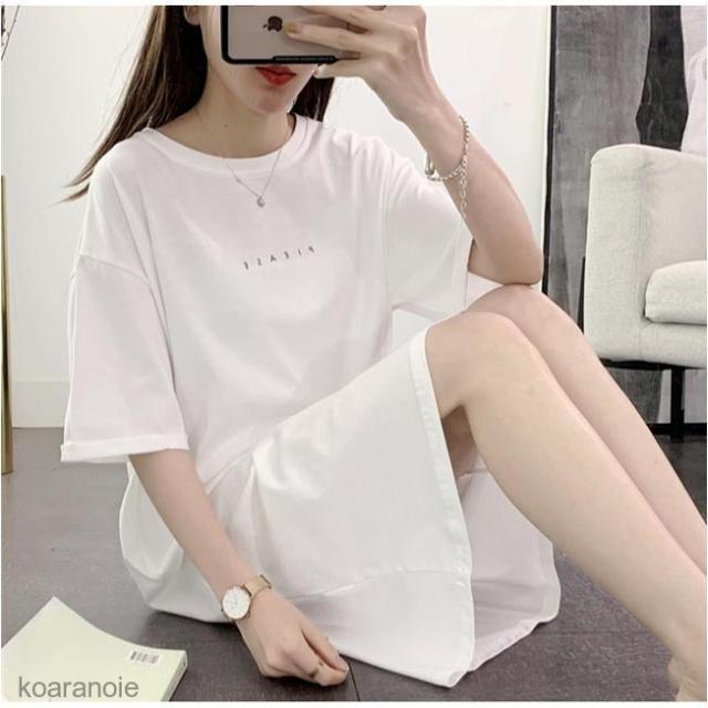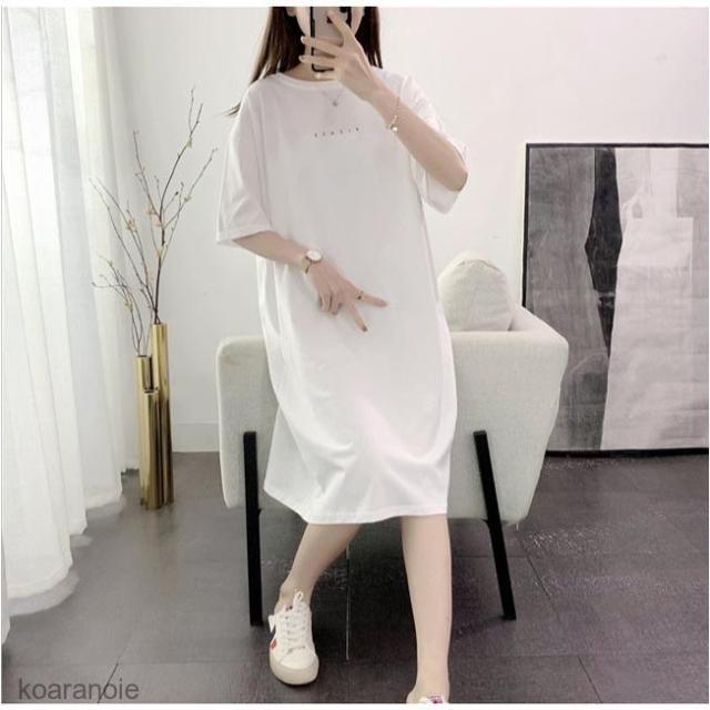 Tシャツワンピース 白 ロングTシャツ レディース Tシャツ ゆったり 半袖 ワンピース 体型カバー 夏 女性 半袖Tシャツ 夏ワンピース 半袖ワンピース