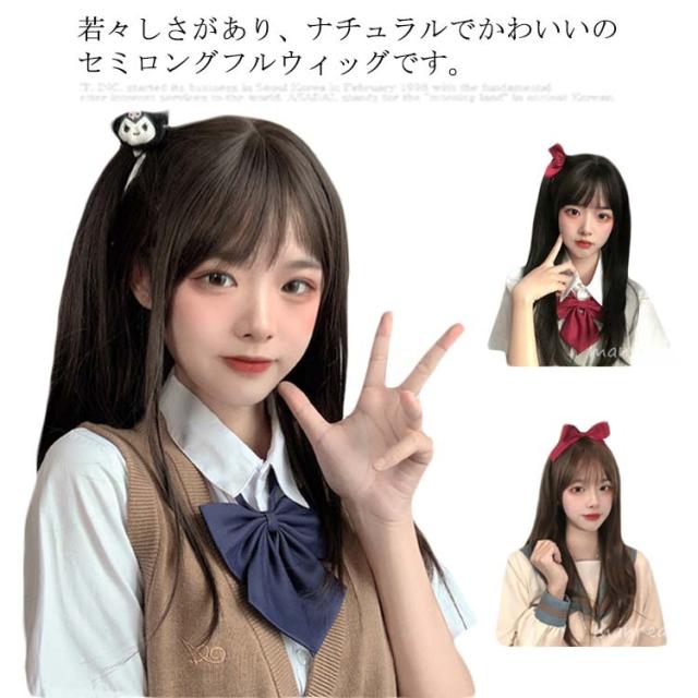 フルウィッグ かつら セミロング ミディアム 自然 ナチュラル 茶色 ブラウン 自然黒 ストレート レディース ヘアネット付き 可愛い ロリータ おしゃれ トレンド 抜け感 小顔効果
