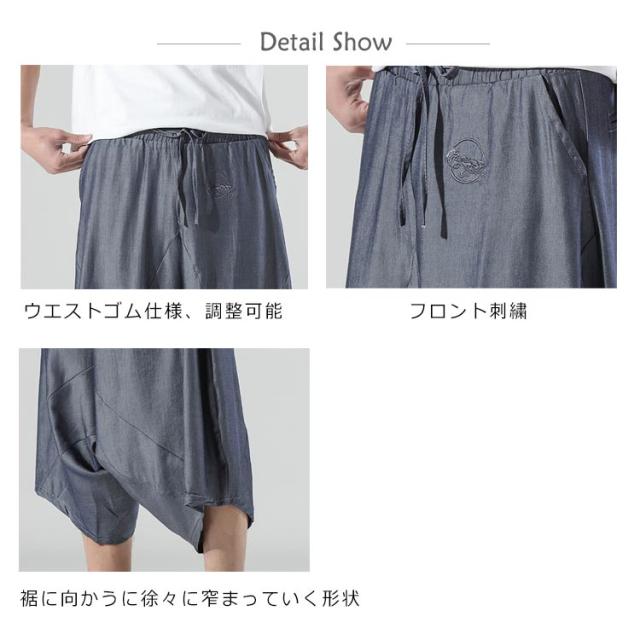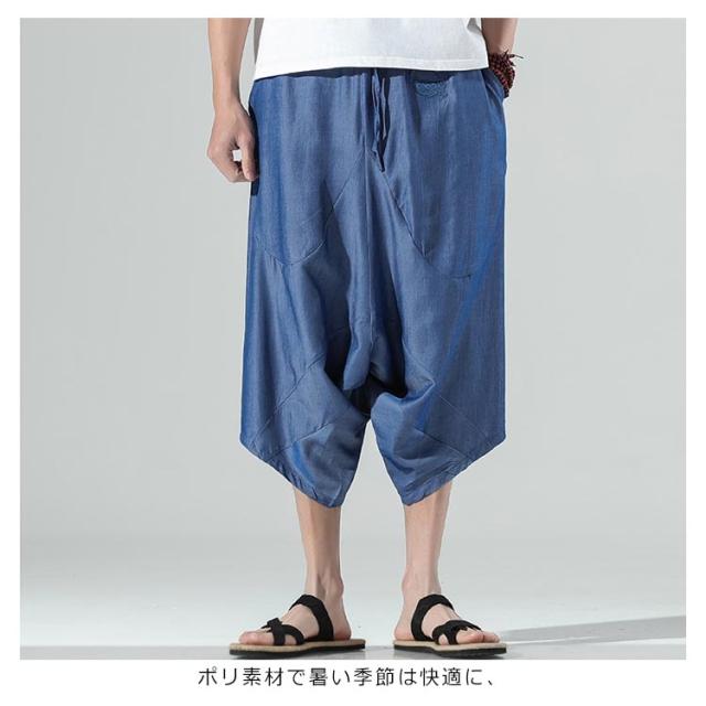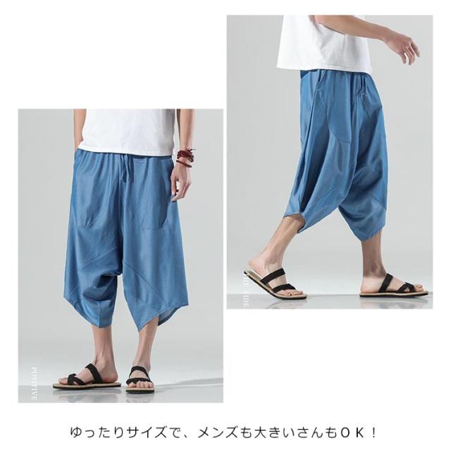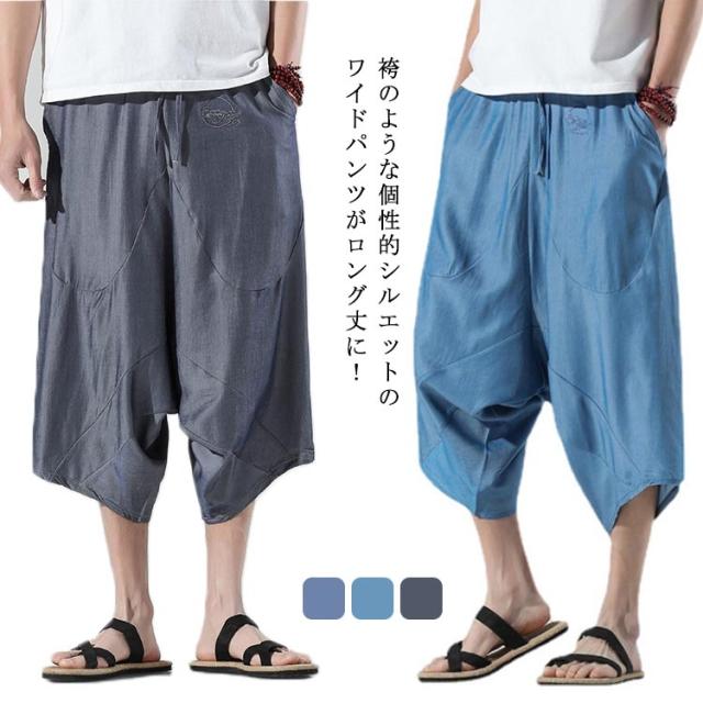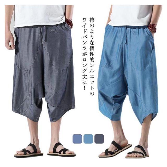 パンツ メンズ 春夏秋 ルームウェア ワイドパンツ ガウチョパンツ 大きいサイズ ハロンパンツ リラックス ひざ下 ゆったり サルエル リラックス ワイド