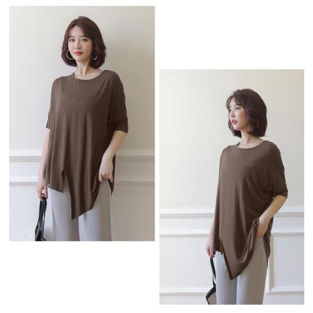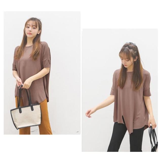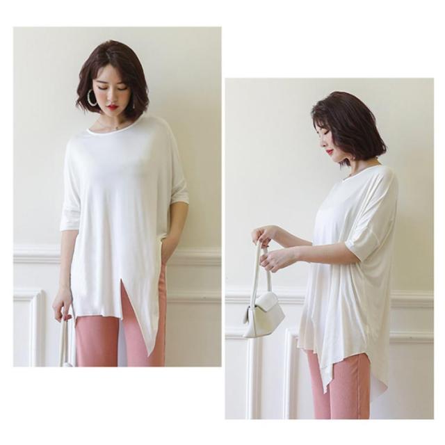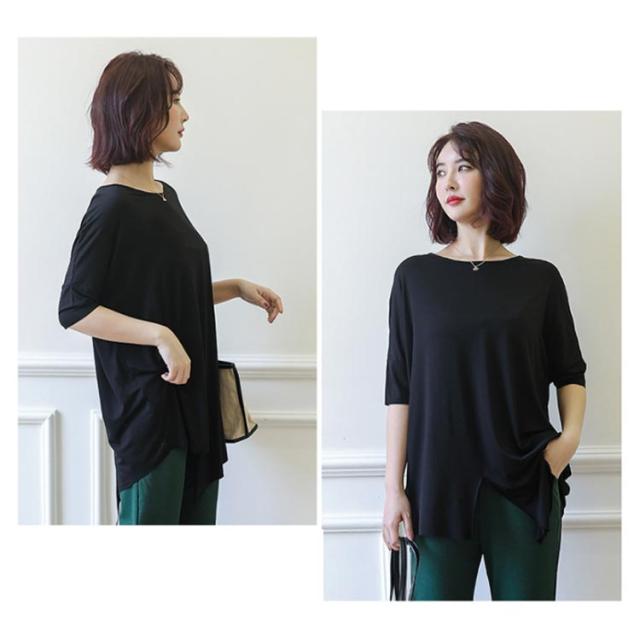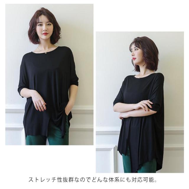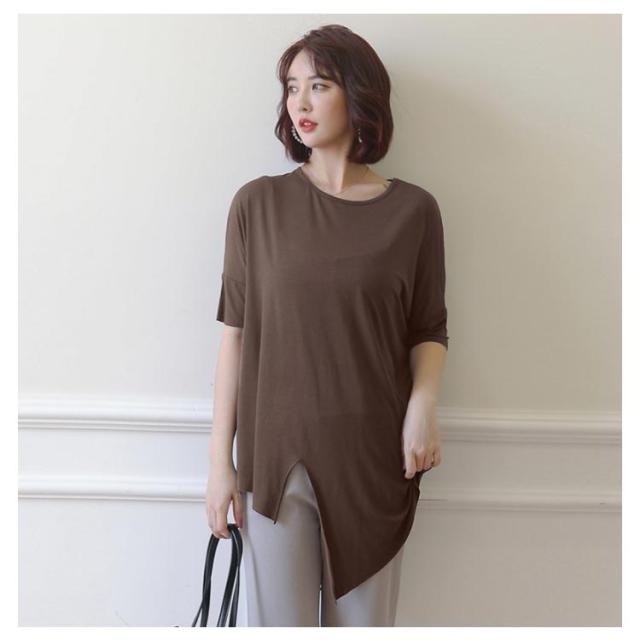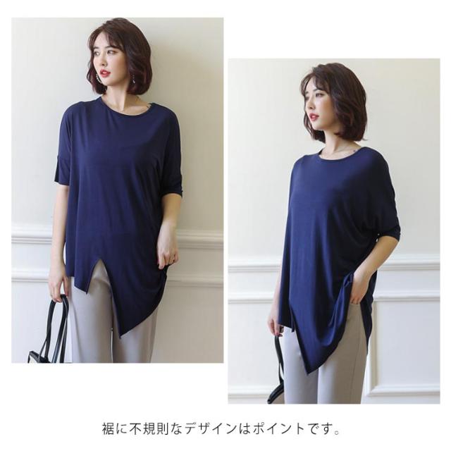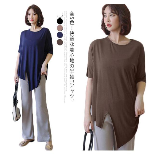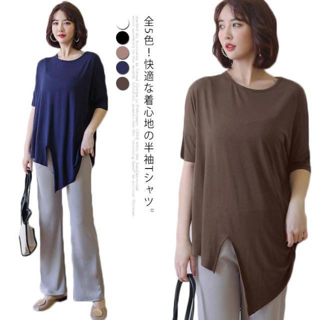 Tシャツ レディース カットソー 半袖tシャツ トップス ゆったり 体型カバー 無地 個性的 裾不規則 モダール 柔らか大きいサイズ おしゃれ 大人 夏 送料無料