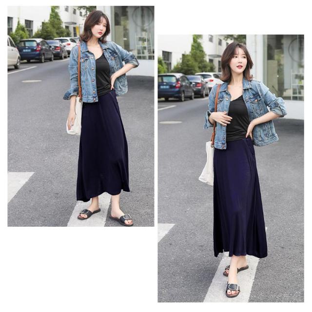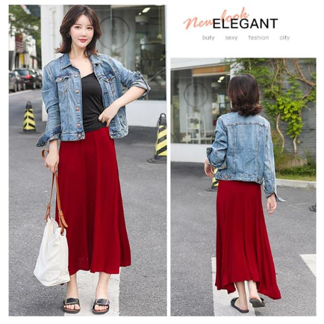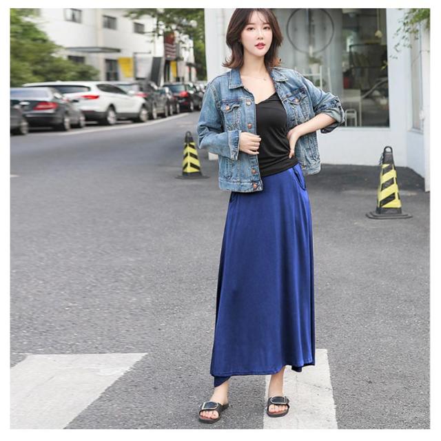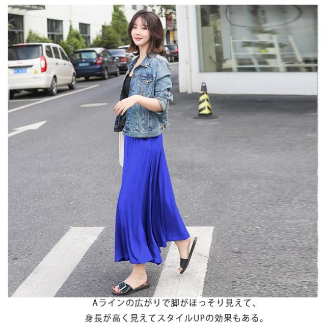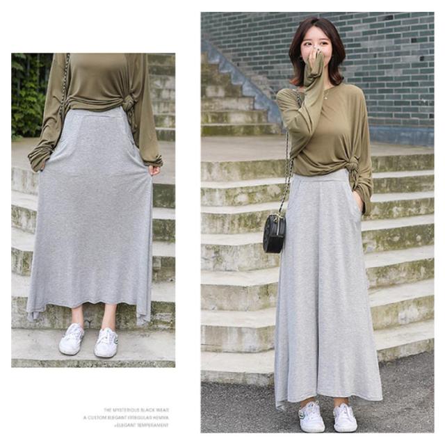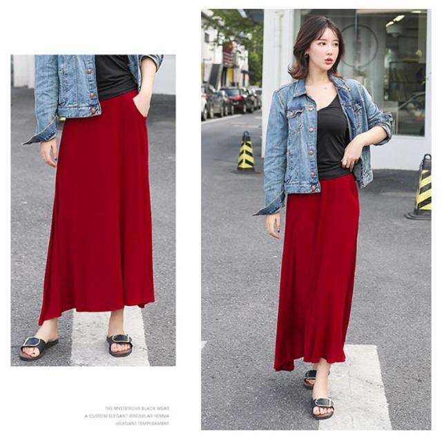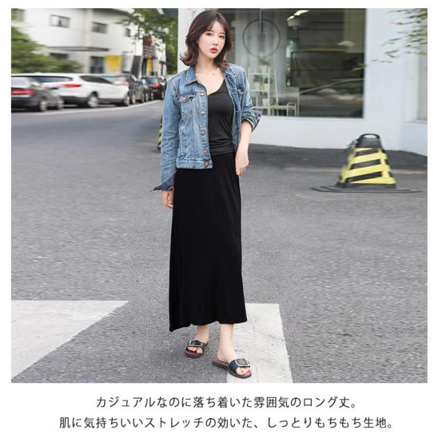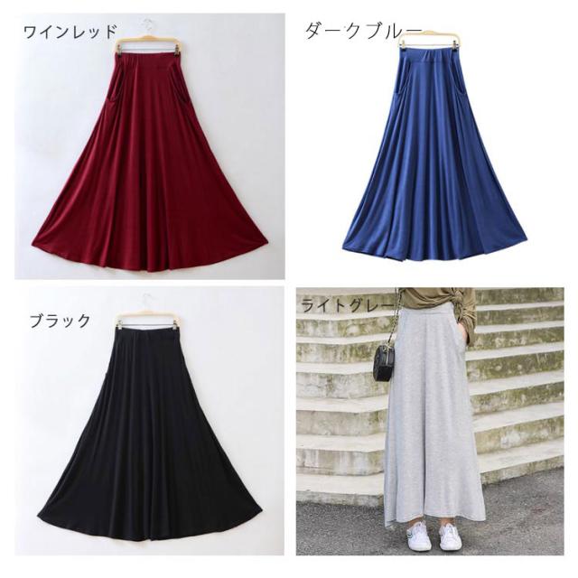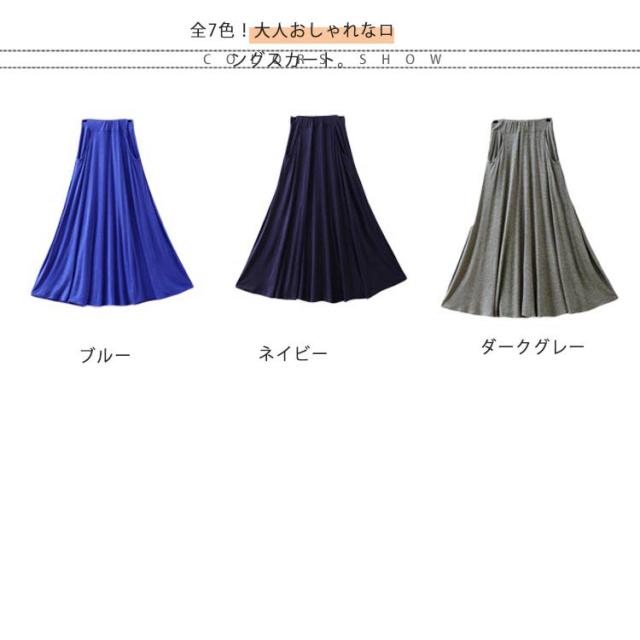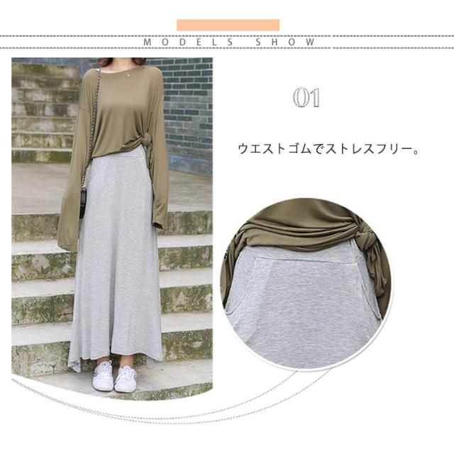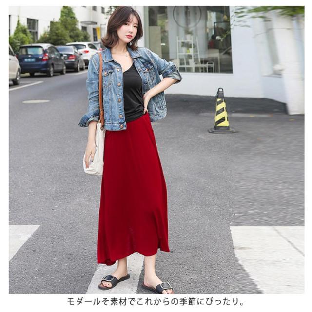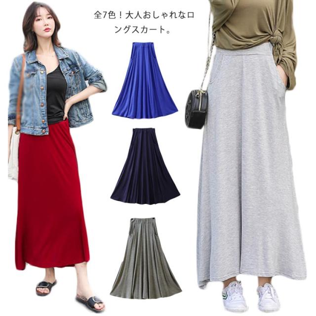 ロングスカート レディース マキシ丈スカート スカート ボトムス Aライン ゆったり 体型カバー ハイウエスト 薄手 送料無料 ウエストゴム ストレッチ 無地 美脚 着やせ カジュアル 大人 上品 優雅 モダール 普段着