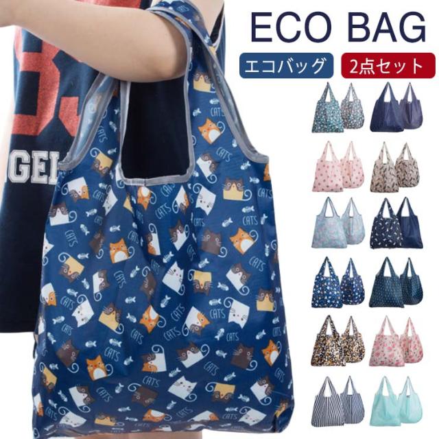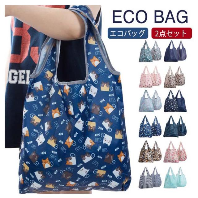 エコバッグ おしゃれ 2点セット 折り畳み コンビニ お買い物 バッグ 大容量 水洗い可能 エコバック 折りたたみ コンパクト レジカゴ 買い物袋 マザーズバッグ 手提げ バッグ 軽量 ショッピングバッグ レジバッグ トート バッグ 送料無料