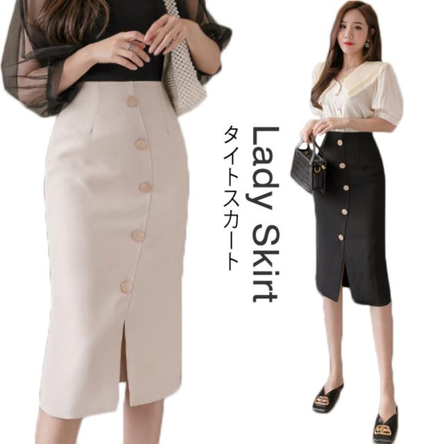タイトスカート レディース フロントボタン スリット入り Iライン スカート ひざ丈 タイト スカート ハイウェスト スカート 膝丈 フォーマル ビジネス ペンシルスカート 春夏 エレガント オフィス リクルート 通勤 OL 送料無料