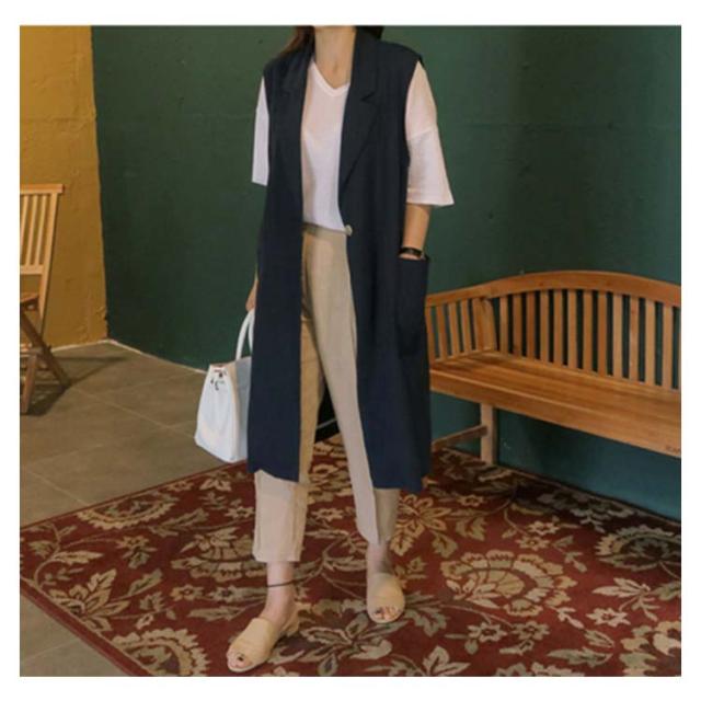 ロング テーラードベスト ロングベスト ノースリーブ ジャケット ロング ジレ ベスト レディース テーラードジャケット ノースリーブ トレンチベスト ロング丈 ノースリーブ レイヤード シンプル 送料無料