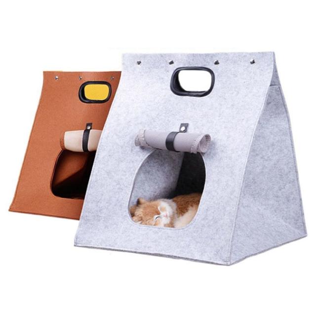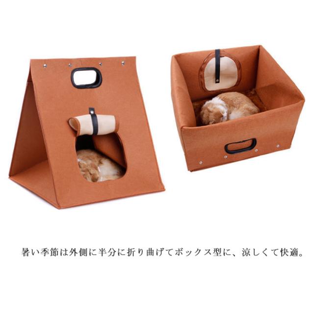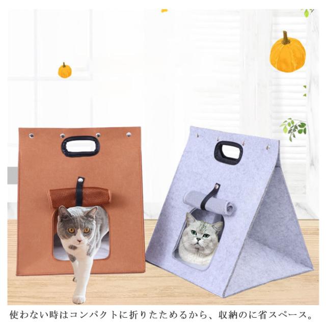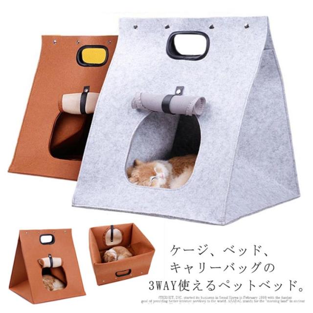 ペットベッド 3way 猫 小型犬 ペットハウス キャリーバッグ 折りたたみ フェルト 軽量 ち手付き ねこ ドーム キャットハウス ペット用ベッド お出かけ 散歩