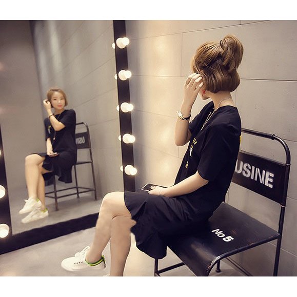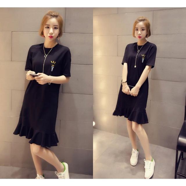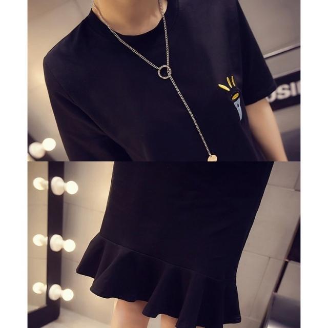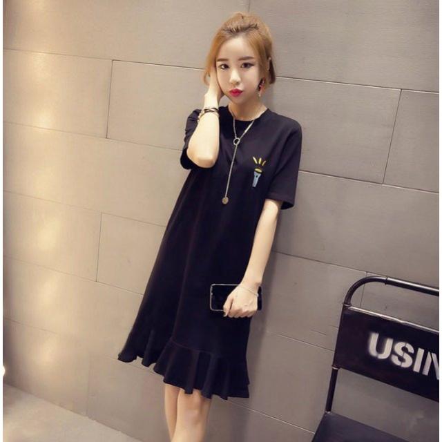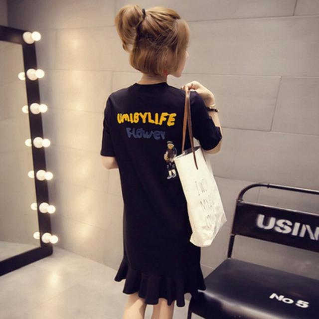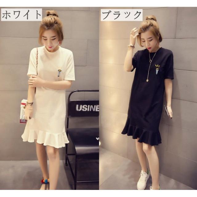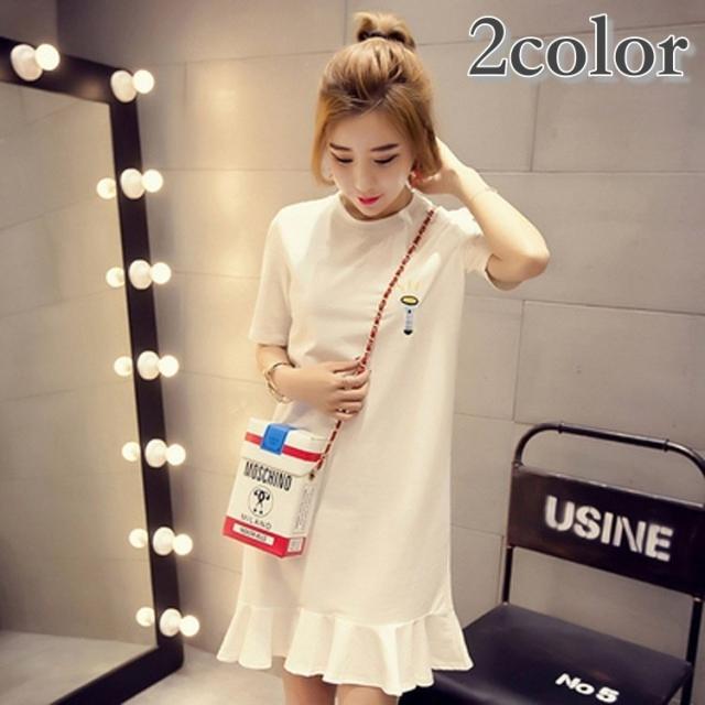 ワンピース Aライン レディース 女性 Tシャツワンピ フレア 半袖 ショート丈 ミニ丈 クルーネック 刺繍 英字ロゴ シンプル カジュアル お洒落