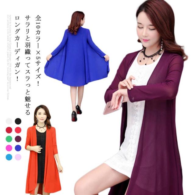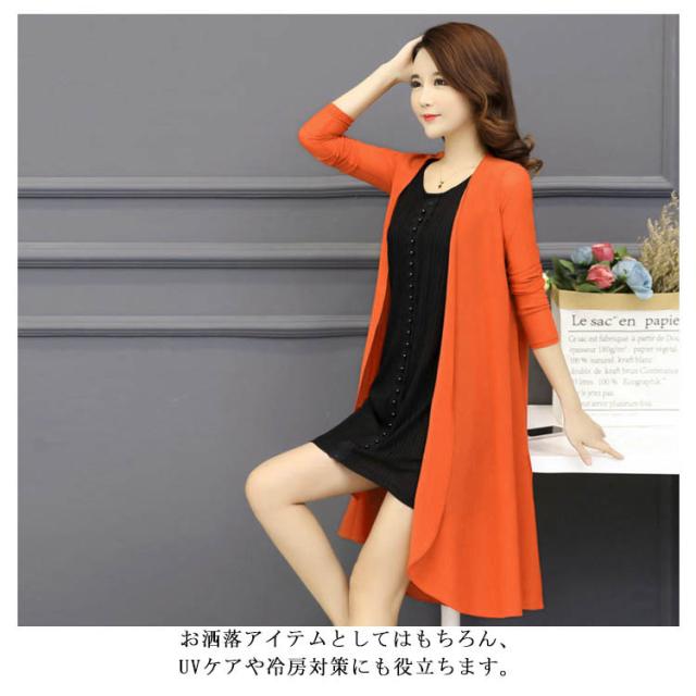 送料無料 全10カラー×5サイズ!サマーカーディガン 羽織り サマー カーディガン ロング丈 レディース ロングカーディガン 長袖 ライトアウター シンプル 無地 薄手 春夏 体型カバー ノーボタン おしゃれ 女性