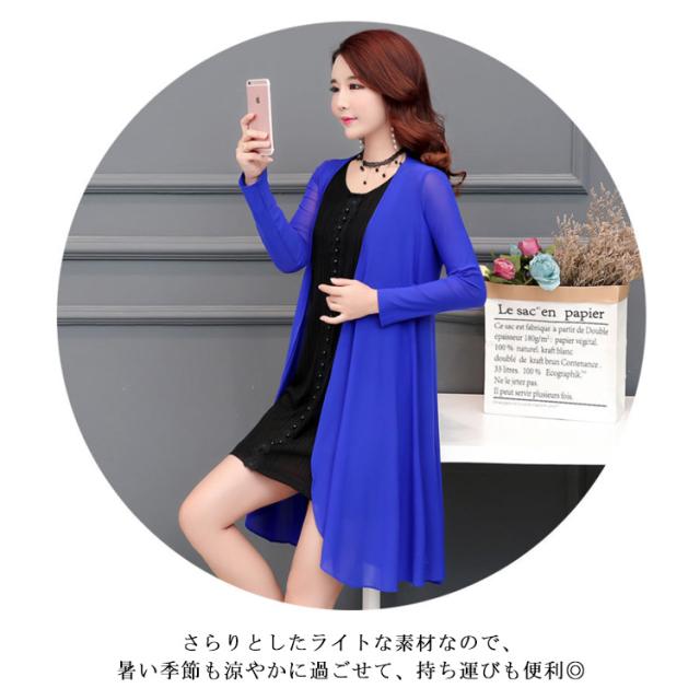 | 全10カラー×5サイズ!サラリと羽織ってスラっと魅せるロングカーディガン! ストンと落ちるシルエットで、洗練された大人顔スタイルに仕上げてくれる一着。 ヒップラインを隠してくれる丈感で、お洒落をしつつ体型カバーができるのも嬉しいポイント。 ふんわり柔らかく肌に優しく馴染むシフォン地を使用し、ストレスを感じさせない快適な着心地を実現。 さらりとしたライトな素材なので、暑い季節も涼やかに過ごせて、持ち運びも便利◎ お洒落アイテムとしてはもちろん、UVケアや冷房対策にも役立ちます。 | |