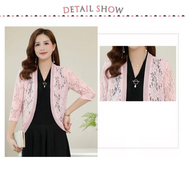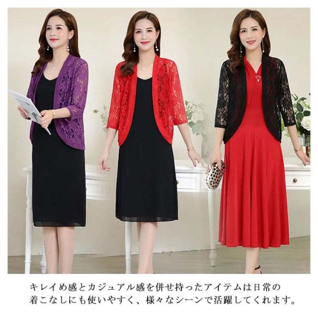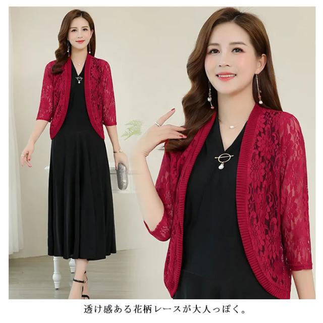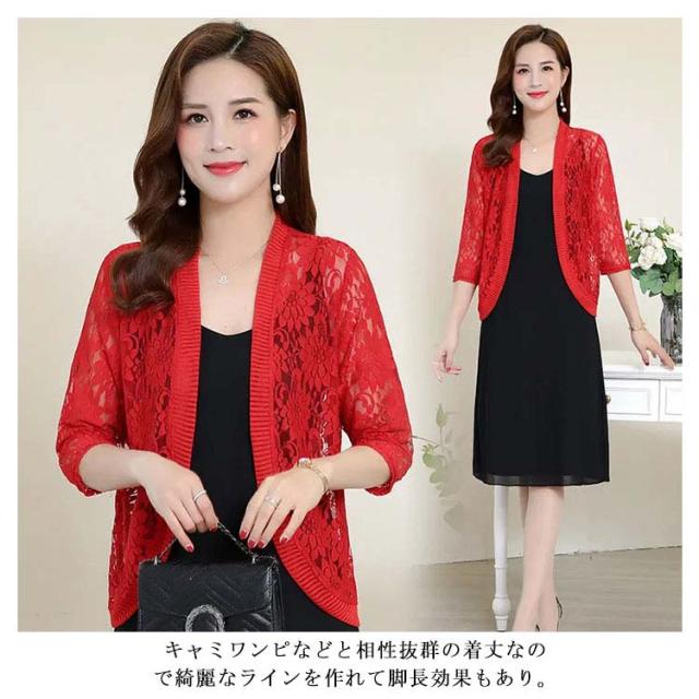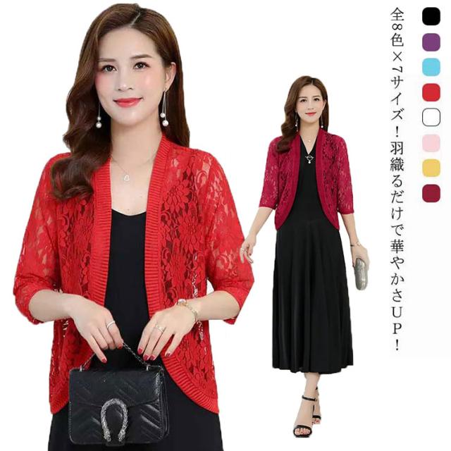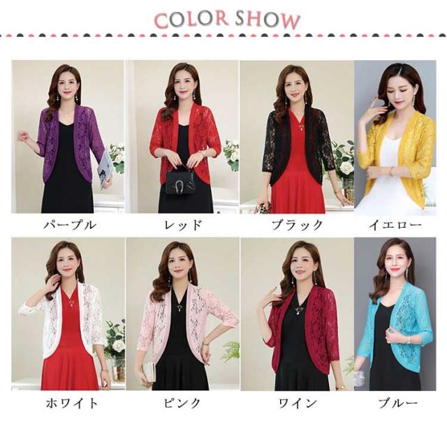 送料無料 全8色×7サイズ!フラワーレース サマーカーディガン ボレロ カーディガン レース 七分袖カーディガン 花柄レース 羽織り 透け感 ショート丈 大きサイズ 日焼け防止 おしゃれ レディース