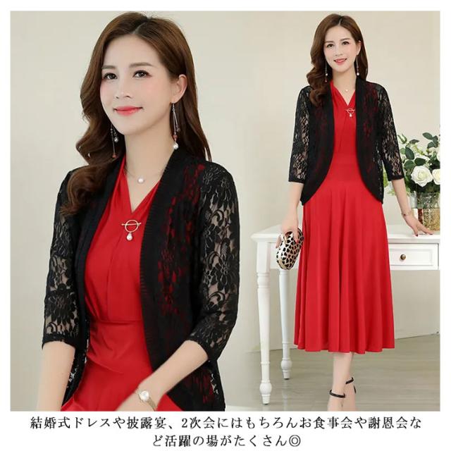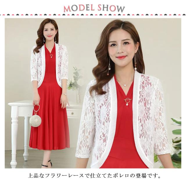| 全8色×7サイズ!羽織るだけで華やかさUP! 上品なフラワーレースで仕立てたボレロの登場です。 透け感ある花柄レースが大人っぽく。 長すぎない七分丈感で肘がちょうど隠れるぐらいが華奢見えのポイント。 キャミワンピなどと相性抜群の着丈なので綺麗なラインを作れて脚長効果もあり。 結婚式ドレスや披露宴、2次会にはもちろんお食事会や謝恩会など活躍の場がたくさん◎ キレイめ感とカジュアル感を併せ持ったアイテムは日常の着こなしにも使いやすく、様々なシーンで活躍してくれます。 | |
