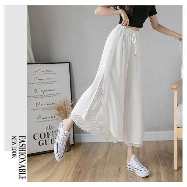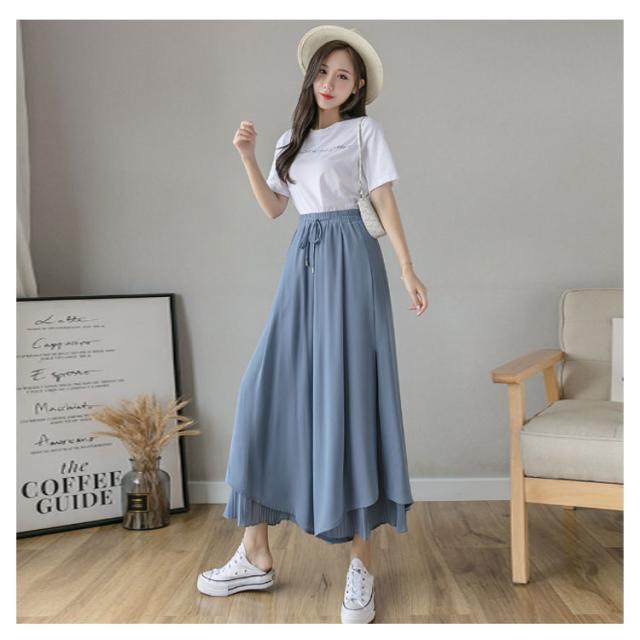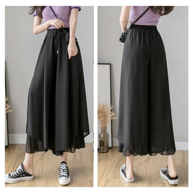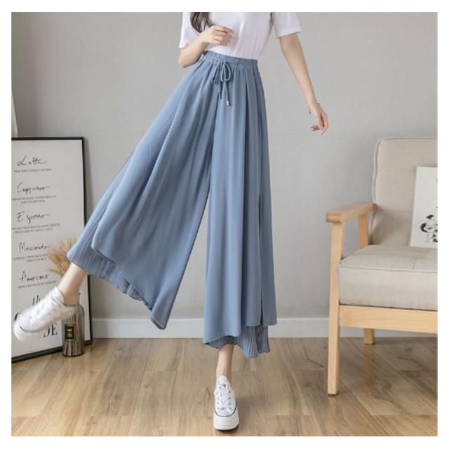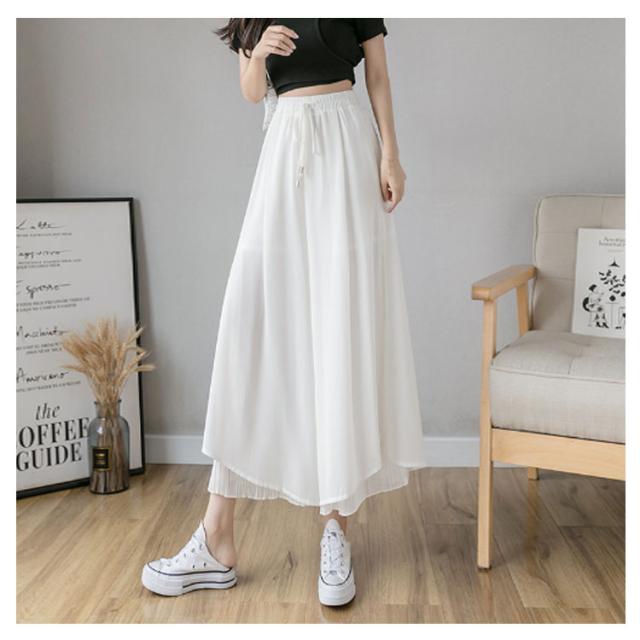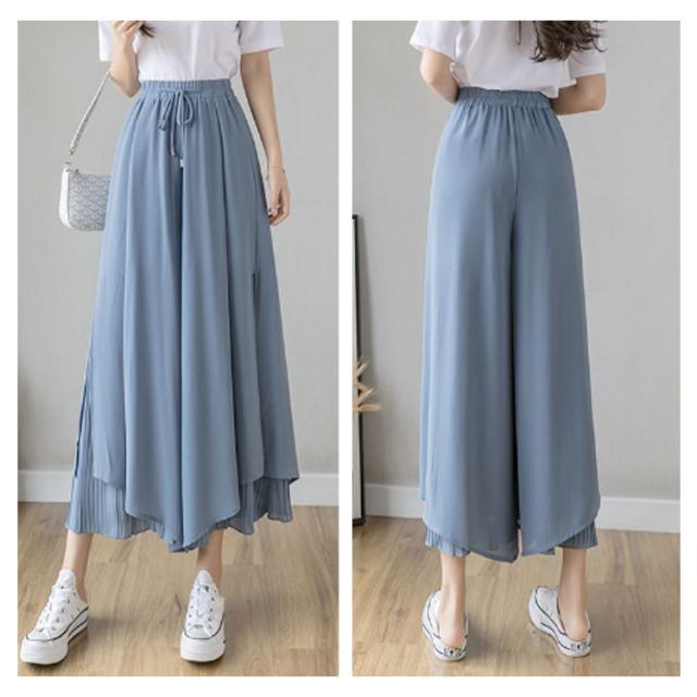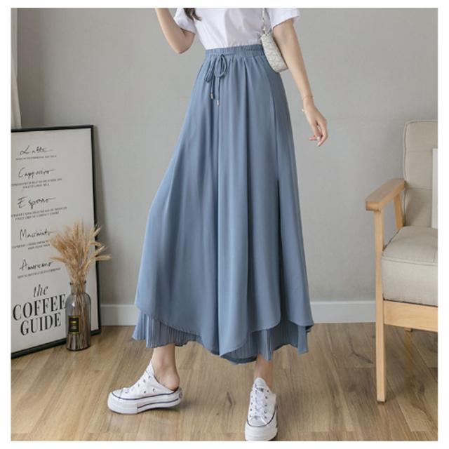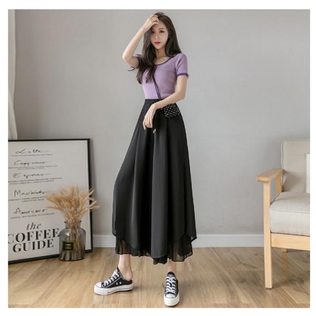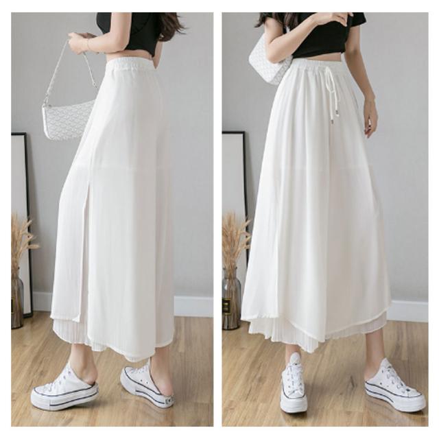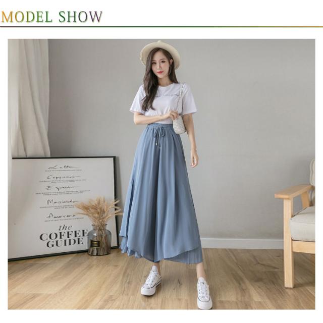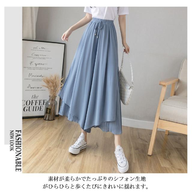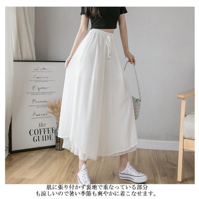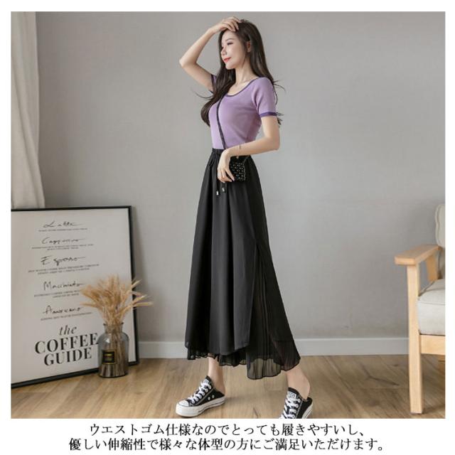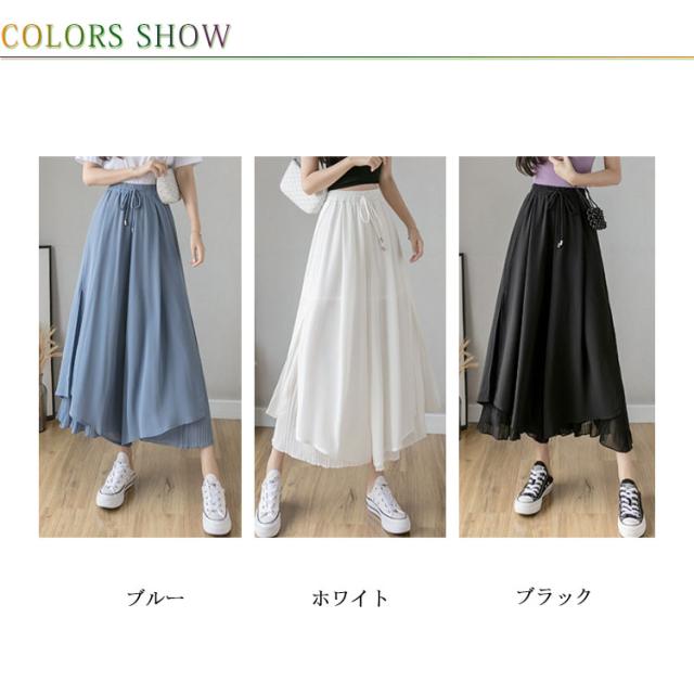 【送料無料】シフォンワイドパンツ ガウチョパンツ スカンツ スカーチョ サイドスリット ウエストゴム グロッシープリーツ ロング丈 細く見える 細身 リブフレアパンツ レディース ゆったり 綺麗 体型カバー ふんわり 2枚重ね ボトムス