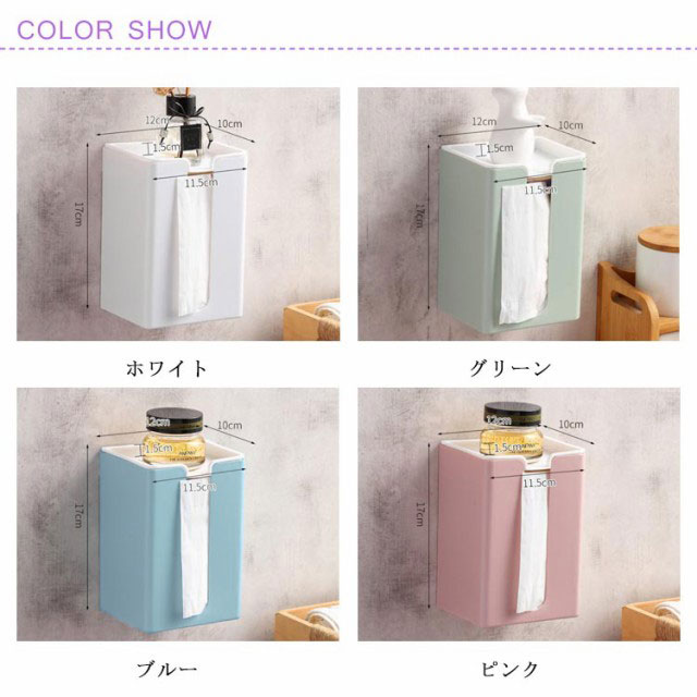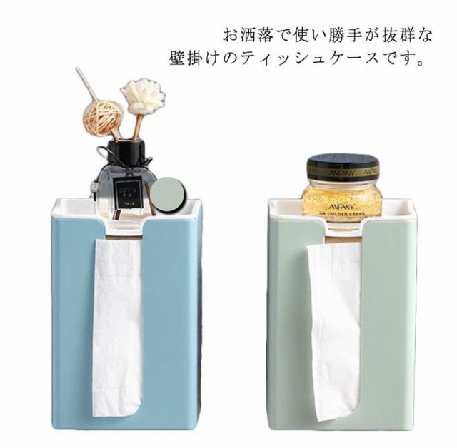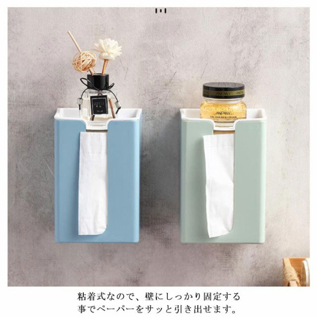 | お洒落で使い勝手が抜群な壁掛けのティッシュケースです。 粘着式なので、壁にしっかり固定する事でペーパーをサッと引き出せます。 蓋の上に携帯電話を放置することだけなくて、小物などを綺麗に置くこともできます。 片手で楽に引き出すことが可能で、使いやすいです! リビングや部屋やバスルームなどの場所に自由に設置はもちろんです。 | |
