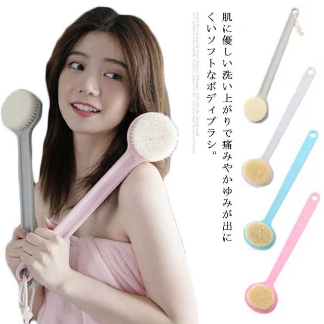 ボディーブラシ 柔らかい ボディ ブラシ ウォッシュブラシ 背中 ブラシ ロングハンドル 風呂 バス 体洗い 乾きやすい マッサージ ボディケア 北欧