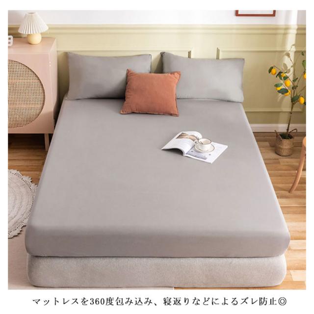 全7色 7サイズ ボックスシーツ ベッドシーツ 無地 マットレスカバー ベッドカバー ピーチスキン加工 通気 洗濯可能 吸水速乾 密度生地