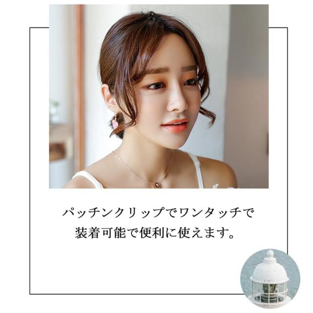 | 小顔効果抜群のセンター分け前髪にもウィッグで作れるんです! セパレートの前髪で女性らしさが溢れ!薄め/集めのスタイルが選びいただけます。 薄くて、超軽量、ナチュラルタイプで地毛とよく馴染みます。 パッチンクリップでワンタッチで装着可能で便利に使えます。 本品は一枚入りなので、左右セットに装着したい方は二つ注文してください。 | |