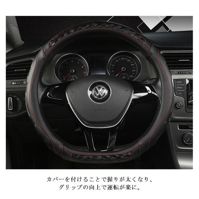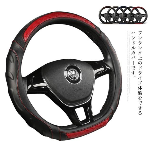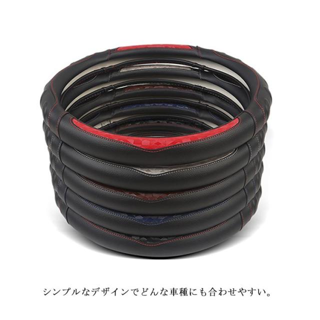 ステアリングカバー ハンドルカバー レザー 車内用品 カー用品 内装パーツ 軽自動車 普通車 乗用車 トラック 自動車内装 お洒落 簡単装着 D型 滑り止め 汚れ防止 高級感