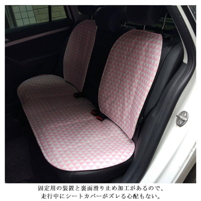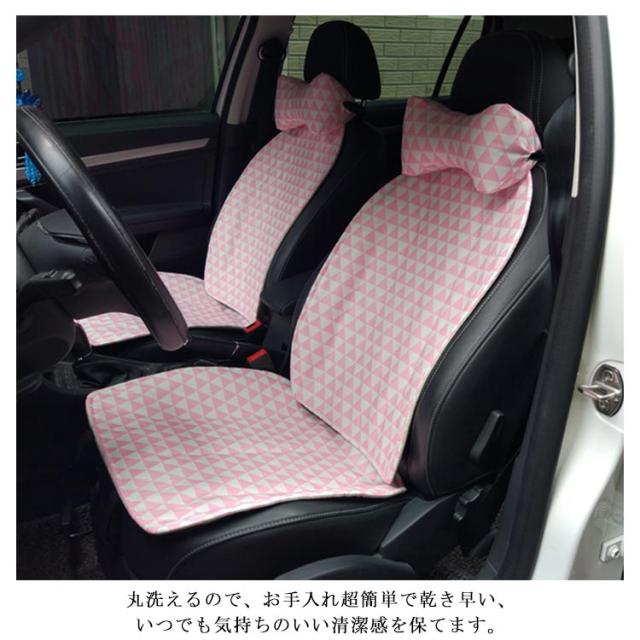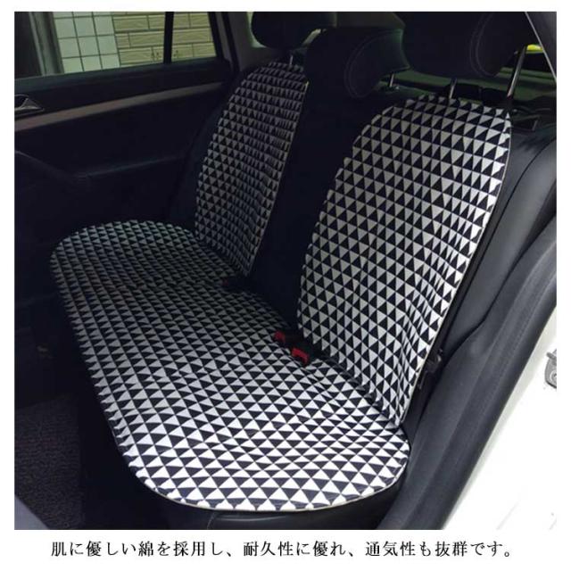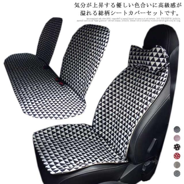 シートカバー カーシートカバー 軽自動車 普通車 汎用 首枕付き 兼用 前席 後部座席用 運転席 助手席 布製 洗える 綿 コットン 可愛い 幾何学柄 三角形柄 心柄 内装パーツ 内装インテリア 全席セット 座席カバー 通気
