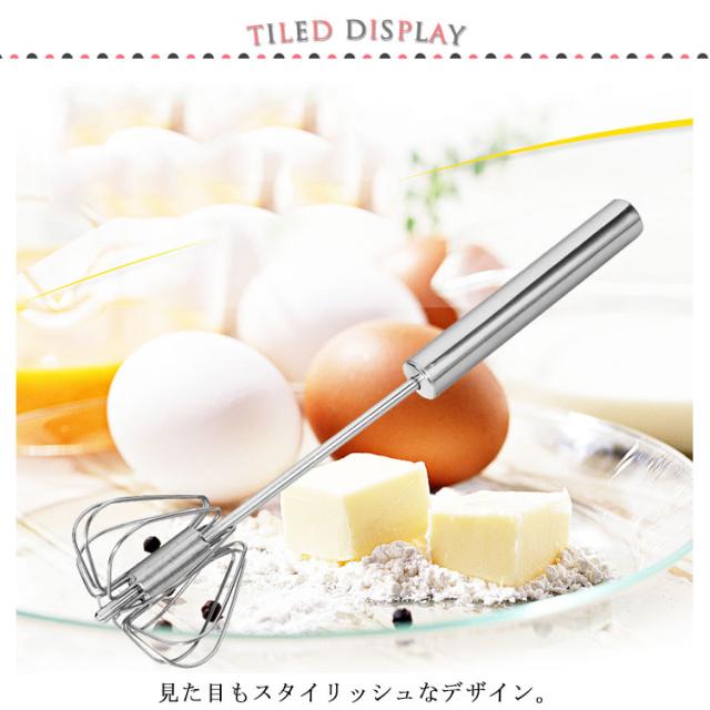 | 先端を押しつけるだけで回転する、半自動泡だて器です。 見た目もスタイリッシュなデザイン。 これさえあれば、ドレッシング、ホイップクリーム作りも苦にならない、とっても便利。 | |