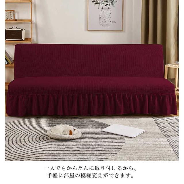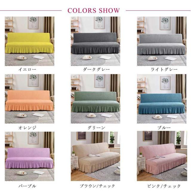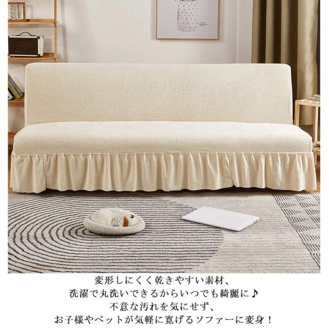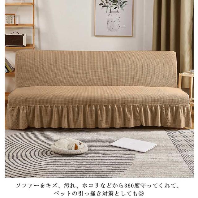 ソファーベッドカバー スカート付き ソファーカバー 3人掛け 2人掛け 肘なし 無地 伸縮 ソファ 替えカバー 洗える 北欧 ワッフル 模様替え おしゃれ ふんわり柔らい