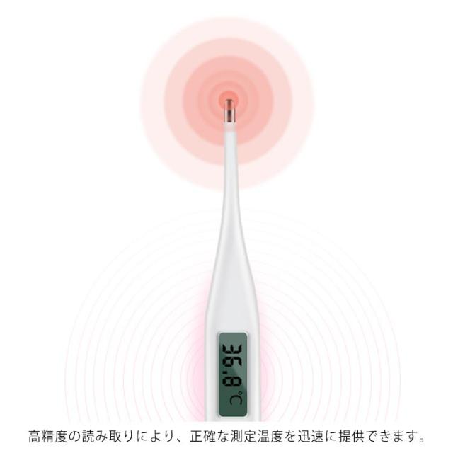 | ご家族みんなの使いやすい家庭用電子体温計。 検温スピードわずか60秒で、温度計の数字の変化を観察する。 高精度の読み取りにより、正確な測定温度を迅速に提供できます。 検温結果は、大型液晶画面に大きな文字で見やすく表示。 有害な水銀なし、大人、幼児に広く適用され、安全で健康的。 予測検温が終了すると、お知らせブザーが鳴ってお知らせします。 水で洗えるので、衛生面でも安心してご使用いただけます。 電池交換が可能なので、使いやすいです。 | |