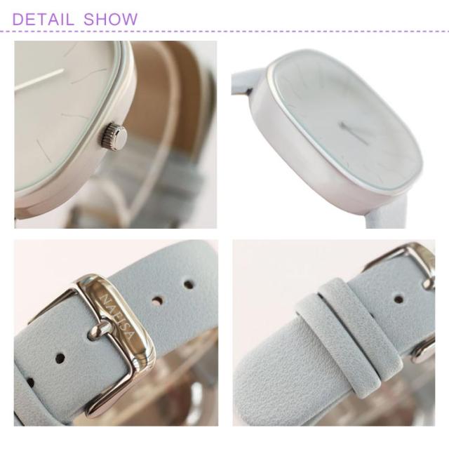 | 洗練された丸みのあるデザイン、女性の可愛らしさを引き立てる腕時計です。 日本製クオーツムーブメントを採用して、走時誤差が小さいです。 底面はステンレス製で、お肌に優しい仕上げとなって、抗アレルギー効果も期待できる。 優しい色合いの華奢な本革ベルトが手元を可愛く華やかに見せてくれます。 ステンレスにはメッキが施されており、色褪せることはなく、撥水仕様なので濡れも強い。 | |