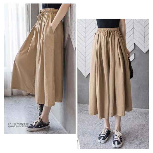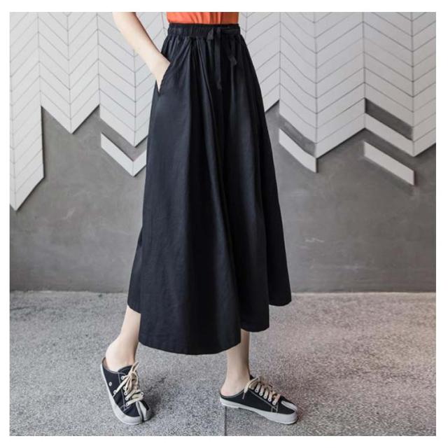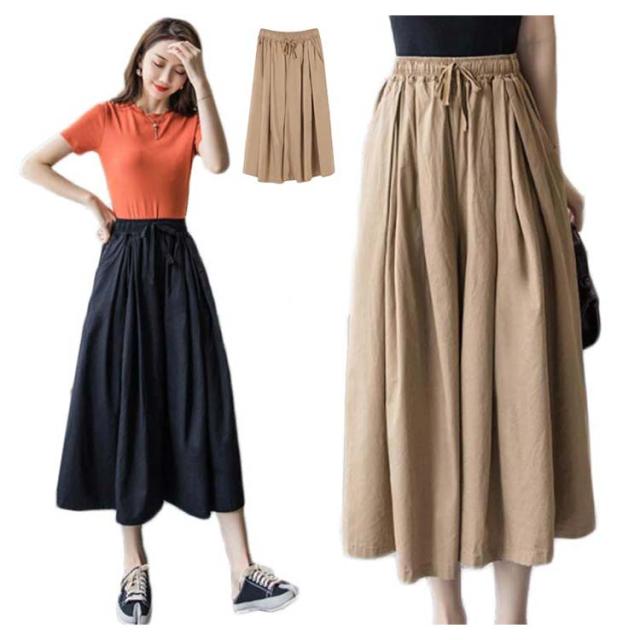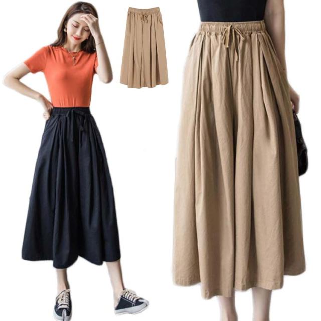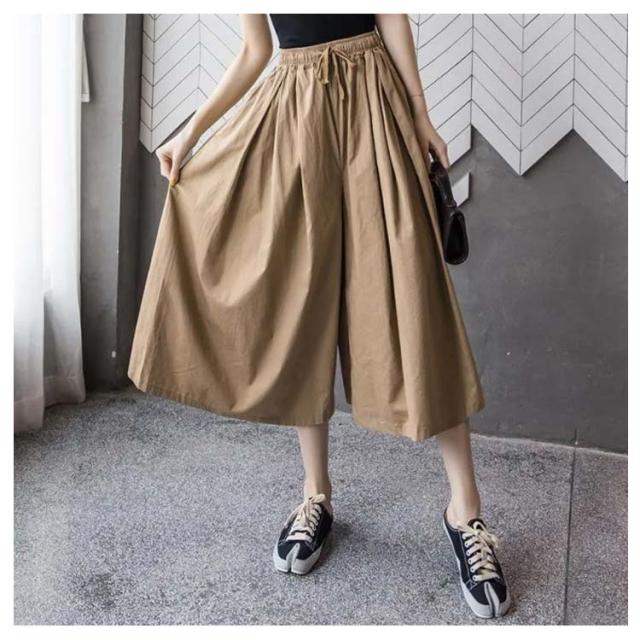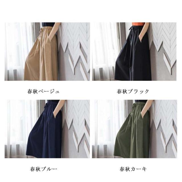 ハイウエスト ワイドパンツ レディース クロップド丈パンツ ガウチョ ロングパンツ 送料無料 ボトムス 春夏 九分丈 大きサイズ ゆったり ウエストゴム 着痩せ シンプル 無地