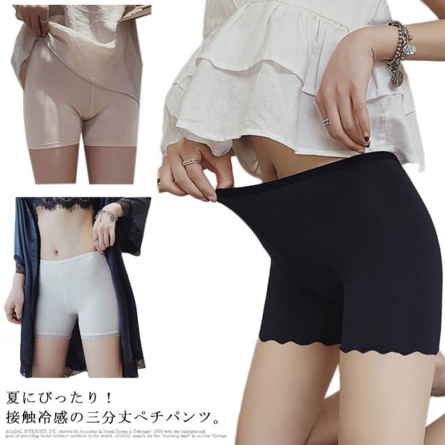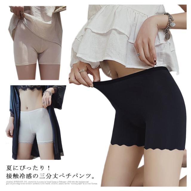 【送料無料】ペチコート 春夏 接触冷感 ペチパンツ レディース ショットパンツ 総レース 花柄 インナー 透け防止 ひびきにくい ひびかない 女性 下着 快適 柔らかい 肌着 見せパン 無地