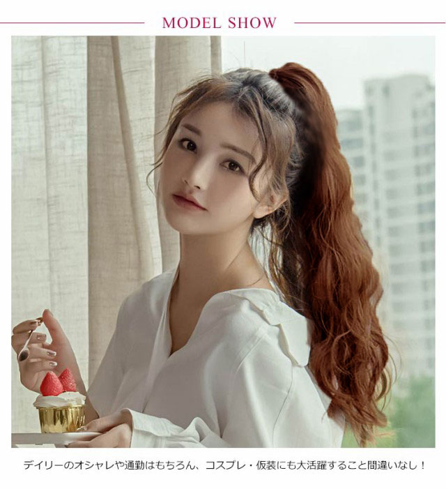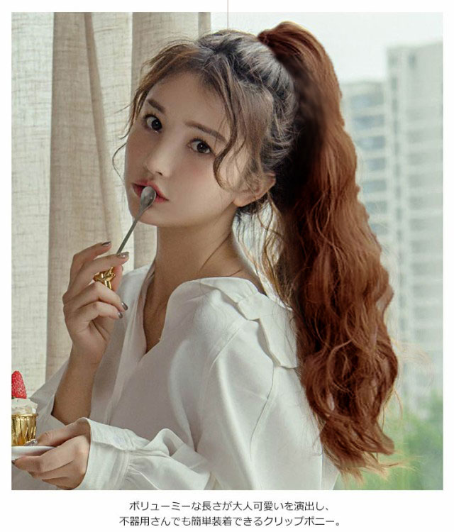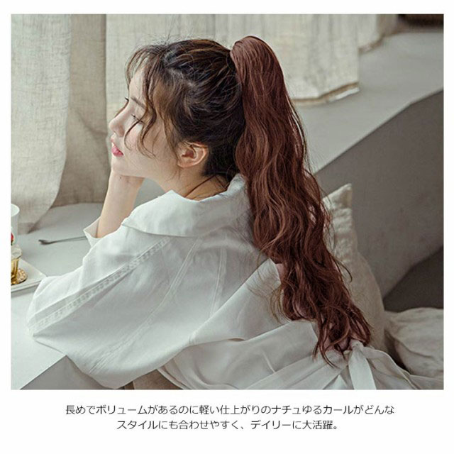 | ワンタッチで一瞬で憧れのウェーブポニーに! ボリューミーな長さが大人可愛いを演出し、不器用さんでも簡単装着できるクリップポニー。 長めでボリュームがあるのに軽い仕上がりのナチュゆるカールがどんなスタイルにも合わせやすく、デイリーに大活躍。 小さめのクリップが外に響きにくく使いやすい。トップにワイヤーが入っているので、結び目に密着させ、より地毛のように自然に馴染む。 ウィッグ特有のテカリのないマットファイバーを採用し、髪もサラサラでとても自然。 デイリーのオシャレや通勤はもちろん、コスプレ・仮装にも大活躍すること間違いなし! | |