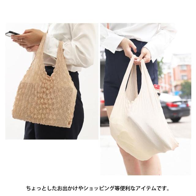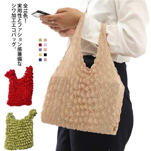 エコバッグ マイバッグ シワ加工 コンパクト 折りたたみ 大容量 バッグ サブバッグ トートバッグ レジバッグ レジ袋 伸縮 bag Large 持ち運び 携帯 伸び縮み 軽量 送料無料 無地 シンプル おしゃれ ショッピングバッグ スーパー 10色